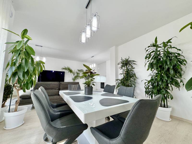Prémium újépítésű lakás, dupla erkéllyel a XIX. kerületben. Eladó ez a minden szempontból átgondolt, legjobb minőségben kivitelezett 3 szobás lakás. (Akár visszabérléssel)Fontosabb információk: • 2024 átadás• 103m2 , 3 szoba• 15,43 m²-es terasz és egy 4,26 m²-es erkély• geotermikus fűtésrendszer, mennyezeti fűtés és hűtés• padlófűtés az előtérben, wc és fürdőszobában• okos-otthon teljesen kiépítve, lentebb részletezve• magas minőségű nyílászárók• szívesen visszabérelné a tulajdonos• tehermentes tulajdoni lap.A hirdetett ár tartalmazza:• teljes mesh WiFi rendszer;• pezsgőfürdő funkcióval és színterápiával ellátott fürdőkád;• okos konnektorok és kapcsolók;• szőnyegek és függönyök;• tartalék burkolatok: csempe, padlócsempe, vízálló padlóOkos-otthon rendszer lehetővé teszi az alábbi funkciók távoli, mobiltelefonos vezérlését is:• beépített riasztórendszer;• fűtés és hűtés;• állítható fényerejű LED világítás;• elektromos, motoros redőnyök;• okos kilinccsel felszerelt bejárati ajtó;• főzőlap, sütő, mosogatógép, mosógép és szárítógép.Emellett a rendszer jelzéseket küld a mobiltelefonra behatolás, vízszivárgás vagy füstérzékelés esetén.Kérdés, vagy egyéb információ esetén keressen bizalommal!