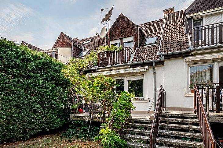 X. KERÜLET RÓZSADOMBJÁN, BELSŐ 4 SZINTES SORHÁZ GARÁZZSAL!X. Kerület legkedveltebb részén, az Óhegy park közvetlen szomszédságában, forgalomtól mentes, csendes mellékutcában, családi házas EXKLUZÍV KÖRNYEZETBEN lévő sorház. A ház 1991-ben épült.Az alagsort a házon belül lépcsőn, illetve az utcafront felől a garázskapun keresztül is megközelíthetjük. Itt 1 autóbeállót és további kettő helyiséget találunk, egy mosókonyhát, illetve egy tárolót, ahol a lakás gépészete kapott helyet. A lakás melegéről központi kazán gondoskodik.A földszinti közlekedőből közelíthetjük meg a fürdőszobát, a tágas és ablakos konyhát, illetve az impozáns nappalit, ahonnan a 11 nm-es napos teraszra, majd lépcsőn lesétálva privát kertbe léphetünk ki.A három különnyíló hálószobát a lakás emeletén találjuk, ebből 2 szobából egy közös 3,5 nm-es erkélyre kijutva csodálhatjuk a parkra néző kilátást.Az emeleten találunk még egy káddal felszerelt fürdőszobát, aminek köszönhetően az ingatlan duplakomfortos.A tetőtér beépítésnek köszönhetően van egy plusz szobánk, ami szabadidős tevékenységre és lakószobának egyaránt igénybe vehető.Sétatávolságra: Óhegy park, óvoda, iskola, cukrászda, üzletek, Csősztorony étterem, gyógyszertár, játszótér, kondipark.Közlekedés szempontjából:95,85 buszmegállója, 75 troli megálló sétatávolságra,Kőbánya alsó vasútállomás 5 percre, Örs vezér tere 15 percre, Puskás Ferenc Stadion és Keleti pu. 15 percre, Nyugati pályaudvar 30 percre.Az ár irányár.Vevőink számára a közvetítés díjtalan.Az alaprajz tájékoztató jellegű.