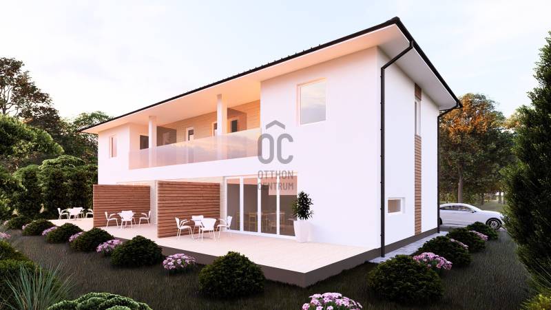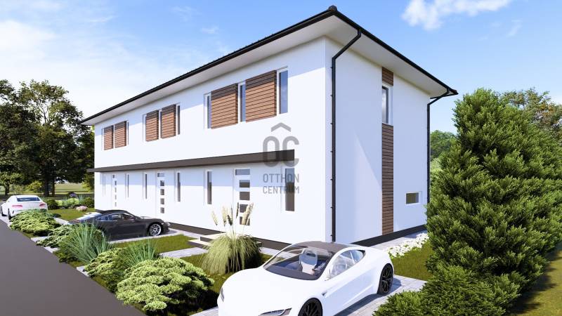 \"Balatonszárszó\" - Balaton déli partjának egyik utolsó romantikus kisvárosa, települése - egészen egyszerűen mesés.A Balatonparttól mintegy 700m-re elhelyezkedő kínálunk eladásra egy minden elvárásnak megfelelő 3 lakóegységes sorházi lakások képében.Tervezett műszaki átadás: 2026.08.15.Műszaki Tartalom:Alapozás:A sávalap 90 cm mély és 40 cm széles, 1 sor 30 cm-es lábazati zsalukőből épül. Aszerelőbeton vastagsága 12 cm lesz.Teherhordó falazat+tetőszerkezet:Magnézium-oxid PIR SIP panelt használunk 18 cm-es PIR szigeteléssel, 5x10 cm-es KVH faszerkezetű válaszfalak készülnek, gyapot szigeteléssel. Az épületre előregyártottszeglemezes tető kerül telepítésre.Tetőfedés-bádogozás:Az épületre Terrán tégla cserép kerül, színazonos bádog elemekkel.Homlokzati hőszigetelés:A lábazatra 5 cm vastag XPS szigetelés kerül, míg a homlokzaton 10 cm grafitos EPSszigetelést alkalmazunk, 1,5 mm-es kapart vakolattal.Homlokzati nyílászáró:6 légkamrás, 3 rétegű üvegezésű nyílászárókat építünk be, úgy, hogy a hőszigetelési érték0,6-0,8 között legyen. A nyílászárók kívül alumíniumból, belül fehér műanyag párkánnyalkészülnek. Redőny opcionálisan választható.Épületgépészet:A vízvezeték-szerelés 5 rétegű csövekkel történik az aljzatban és az előtét fal mögött,csőroppantással és a szükséges idomokkal. A szennyvízcsövek gumigyűrűs tokos rendszertalkalmaznak, a WC 110 mm-es, míg a mosdó, kád és egyéb lefolyók 50 mm-es átmérővelkészülnek.Mosógép és mosogatógép számára falba szerelt vízvételi és vízelvezetési lehetőségetbiztosítunk. A szaniterek a nettó 400.000 Ft értékig választhatók. Az ár az építettzuhanyfülke kivitelezését is tartalmazza.A melegvizet és a padlófűtést monoblokkos hőszivattyú biztosítja, 2 db Wifi-s GREE okosklímákkal.Villanyszerelés:Vezeték nélküli villanykapcsolót alkalmazunk, amely bárhova elhelyezhető és később isáthelyezhető. Schneider Asfora típusú dugaljakat telepítünk.A villamos alapszerelés helyiségenként 1 kapcsolót, 1 lámpa kiállást és 3 konnektorttartalmaz. A konyhai gépek (hűtő, mikró, sütő, mosogatógép, páraelszívó, főzőlap) alapkiállásai biztosítva vannak.A villamos betáplálás a mérőhelytől 1x15 m távolságig van biztosítva. A födém szerkezeténcsőben, MBCU kábelekkel történik a vezetékek elhelyezése, az oldalfalon és az előtét falmögött.Gipszkartonozás:A mennyezetre 1 réteg 15 mm-es tűzgátló gipszkarton kerül.Könnyűszerkezetes házak esetében a főfalak és válaszfalak 1 réteg 12,5 mm-es tűzgátlógipszkarton borítást kapnak. A vizes helyiségben impregnált karton kerül felhelyezésre.A födémre hőtükör fólia kerül rögzítésre.Beltéri ajtók:Utólag szerelhető beltéri ajtókat építünk be. Nettó 80.000 Ft/ajtó értékben. Drágább beltériajtók is választhatóak, felár ellenében.Festés:A gipszkarton felületeken glettelés történik, pozitív éleken élvédőt, negatív éleken pedigüvegszövet hálót alkalmazunk.A kész falfelületet fehér színnel festjük.Burkolás:A hidegburkolat ára nettó 5500 Ft/nm-ig választható.A WC és fürdőszoba falai mennyezetig burkolva.Laminált padló alátétfóliával, nettó 5500 Ft/nm-ig választható.Szegélyek, sarokelemek és toldók nettó 1200 Ft/nm-ig választhatóak.Ezeken felül műszaki tartalmunk lakásonként 1,5 kW napelem telepítéstis tartalmaz.A vételáron felül további 5 Mft-ért kötelezően megvásárolandó, elektromos töltéshez előkészített szabad felszíni beálló.Felmerülő kérdések illetve megtekintés esetén állok rendelkezésére.