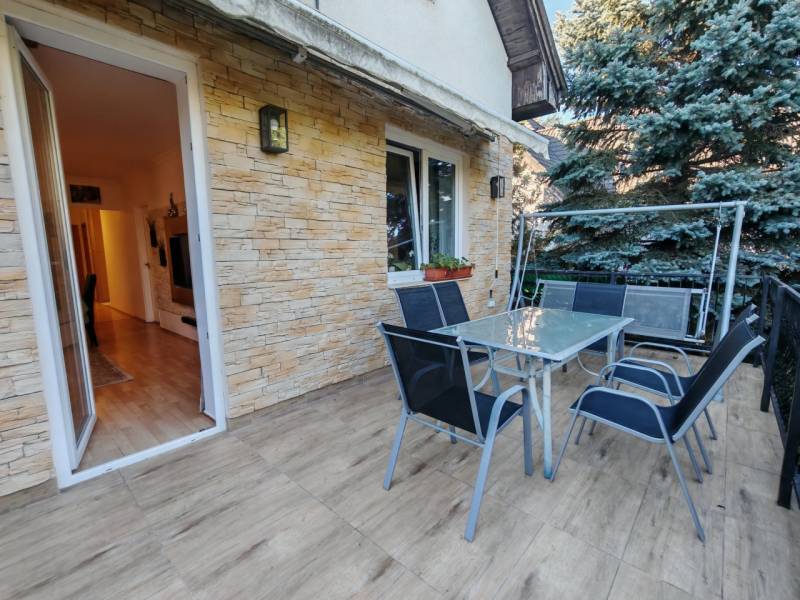 Csak nálunk!Otthon Start hitel is igényelhető!Csömör, Ibolya utca – családbarát lakás saját kerttelBudapest XVI. kerületének szomszédságában, Csömör csendes utcájában eladó egy 1990-ben épült, tégla lakás.Az ingatlan nettó 89 m² lakótérrel rendelkezik, amelyhez tartozik egy 45 m²-es garázs és mosókonyha szint, valamint egy 24 m²-es terasz, amely közvetlenül a nappaliból nyílik.Belső elrendezése:-Előszoba – 5,13 m²-Közlekedő – 5,1 m²-Amerikai nappali + étkező – 26,8 m²-Konyha + étkező – 9,18 m²-Szoba – 9 m²-Szoba – 11,1 m²-Szoba – 12 m²-Szoba – 12 m²-Fürdő – 8,13 m²-WC – 1,85 m²-Terasz – 24,1 m²A fő falak 50 cm vastag téglából épültek szigetelés nincs,de nem indokolt,mert kiváló a hőtartása az ingatlannak.Műanyag nyílászárók 2 réteg üveg 5 légkamra. Gázkazán a mosókonyhában nem a lakótérben ,radiátoros fűtéssel.2 db inverteres klíma 320 m² saját kert, amely a ház mögött helyezkedik el, így nyugodt, intim hangulatot biztosít.Garázs + 3 felszíni autóbeálló.A szomszéd lakás az emeleten helyezkedik el nyugodt csendes család kiváló hangszigetelés ügyvédi megosztási szerződés van az ingatlanhoz.Hitelezhető az ingatlan!Az kertkapcsolatos lakás ideális választás lehet családok számára, akik Budapest közelségében, mégis nyugodt, kertvárosi környezetben keresnek otthont.Kiváló közlekedés.Jöjjön el nézze meg tegyen ajánlatot!I.V.