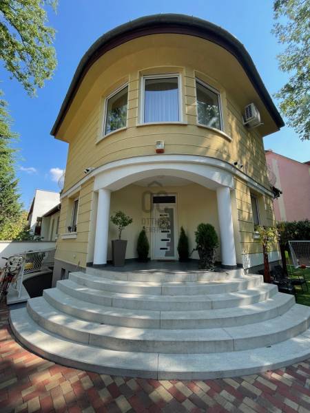 Különleges ajánlat Nagyerdő legkedveltebb részén: Simonyi út mellett elhelyezkedő, bruttó 373 m²-es, önálló családi ház, amelyet a funkciók sokfélesége tesz igazán értékessé. Többgenerációs otthonnak, magánklinikának, irodaháznak vagy cégszékhelynek egyaránt ideális — de aki a Nagyerdő közelségét szereti, családi házként is tökéletes választás. Az elmúlt években a ház korszerűsítése és belső dizájn átalakítása is megtörtént, modern, rendezett, reprezentatív egységet eredményezve.Földszint- Modern nappali–étkező: 35 m²- Gépesített konyha: 8 m²- Gardrób: 5 m²- Előtér, vendég WC- Tágas, részben fedett terasz: 37 m²- Külön bejáratú önálló lakrész: 31 m² (igény szerint könnyen egybenyitható)Tetőtér:- 3 hálószoba: 22 / 19 / 27 m²- 2 fürdőszoba (összesen 17 m²)- Gardrób szoba: 8 m²-2 loggia Szuterén:- Korábban rendelőként használt helyiség: 32 m² (váró, kézmosó, WC kiépítve) - Kazánház + mosókonyha: 11 m²- Tároló: 33 m²- Fürdőszoba: 9 m²- Dupla garázs: 31 m²- Közlekedők, kiszolgáló helyiségek Miért különleges ez az ingatlan?* Rugalmas, többfunkciós alaprajz: külön bejáratú lakrész, rendelő/üzleti helyiség a szuterénben — könnyű átalakíthatóság többféle célra.* Reprezentatív megjelenés: korszerűsítések és belső dizájn frissítései révén akár ügyfélfogadó helyiségnek vagy irodának is alkalmas.* Gyakorlati megoldások: nagy tárolókapacitás, dupla garázs, külön kazánház és mosókonyha.* Nagyerdő közelsége: zöld környezet, séták, sportlehetőségek — vonzó a családoknak és dolgozóknak egyaránt.* Kedvező kombináció: otthon + vállalkozás egy helyen — ideális megoldás például magánrendelő + lakrészként hasznosításra, vagy cégközpont + vezetői lakás egyben.Kinek ajánljuk?Többgenerációs családnak, ahol szükség van külön, mégis kapcsolódó lakóegységre.Orvosi/szakmai rendelőnek, magánklinikának (a korábbi rendelőhelyiség jó alap).Cégnek/irodaháznak, ahol fontos a reprezentatív elhelyezkedés és saját parkolási lehetőség.Olyan vásárlónak, aki szeretné a Nagyerdő nyújtotta életminőséget kombinálni a vállalkozási lehetőségekkel.