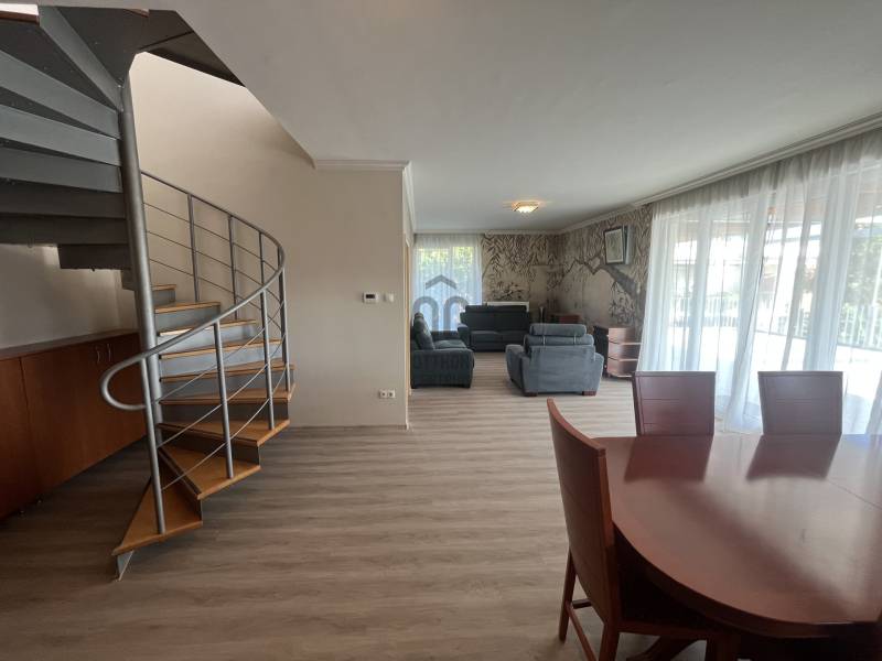 A Budapest 03. kerületében, a Rómaifürdő varázslatos környezetében található ez a kivételes, lakás, amely ideális választás ügyfelek számára, akik egy kényelmes és exkluzív otthont keresnek. Az ingatlan alapterülete 136 négyzetméter, amely négy tágas szobával és két modern fürdőszobával rendelkezik, így ideális választás családoknak vagy akár kisebb közösségeknek is. A világos és tágas nappali a lakás középpontja, amely a konyhaszigetes amerikai konyhával egyesülve tökéletes helyszínt biztosít a családi összejövetelekhez és baráti találkozókhoz. A lakáshoz tartozó 200 négyzetméteres teraszról lenyűgöző panoráma nyílik a folyóra, amely a hétköznapok során nyújt pihentető kilátást. Az ingatlan prémium kivitelezése és modern megoldásai, mint a biztonsági ajtó, videókaputelefon és az automata öntözőrendszer, garantálják a kényelmet és a biztonságot. A lakás hűtéséről klíma gondoskodik, míg a fűtést gáz cirkó rendszer biztosítja, így a lakás egész évben kellemes hőmérsékletet biztosít. A környék ellátottsága kiváló, a közlekedési lehetőségek kitűnőek, hiszen a közelben található busz gyors és kényelmes hozzáférést biztosítanak a város többi pontjához. A csendes, rendezett kerttel és medencés társasházzal rendelkező lakóparkban élvezheti a nyugalmat, miközben a város nyüzsgése is könnyen elérhető. A környék biztonságos, és a portaszolgálat gondoskodik a lakók kényelméről és védelméről. A lakás további előnyei közé tartozik a szauna és a jakuzzi, amelyek a mindennapi stressz levezetésére szolgálnak. Az akadálymentesített kialakítás lehetővé teszi, hogy mindenki számára könnyen hozzáférhető legyen az ingatlan, így akár idősebb családtagok, akár kisgyermekek számára is ideális választás. Ha Ön egy olyan ingatlant keres, amely nemcsak otthon, hanem befektetési lehetőség is, ez a penthouse stílusú lakás tökéletes választás lehet. A felkapott környék és a vízpart közelsége garantálja, hogy az ingatlan értéke folyamatosan növekedni fog. Bármilyen kérdése merülne fel az ingatlannal vagy a bérleti lehetőségekkel kapcsolatban, bizalommal kereshet minket. Szívesen állunk rendelkezésére, hogy segítsünk a megfelelő döntés meghozatalában, és hogy Ön is élvezhesse ezt a csodálatos lakást a Rómaifürdő szívében.