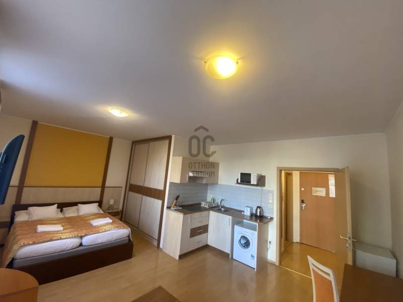 Budapest XIII. kerületében, az Országbíró utcában felújított apartmanházban hosszú távra (minimum 1 év) kiadóak modern, igényesen berendezett, gépesített, teljes felszereltségű lakások (38,7 m², 44,3 m², 32,6 m²) melyek erkélyéről parkos, zöld környezetre nyílik kilátás. A lakások nappali + hálófülke elrendezésűek.Beköltözés azonnal lehetségesBérlők száma: maximum 2 főKaució: 2 x 750 EUR/apartmanBérleti díj: 600 EUR/hó/apartmanRezsi: 150 EUR/hó/apartman, amely tartalmazza a hűtést-fűtést, áramot, vizet, internetet, kábel TV-t, heti egyszeri takarítást és a 24 órás recepció szolgáltatásátHáziállat: kis méretű, jól nevelt kutya vagy cica hozhatóAz ingatlan kiváló elhelyezkedésű, könnyen megközelíthető tömegközlekedéssel, a közelben számos bevásárlási lehetőséggel. Az épületben kávézó, étterem és üzletek is találhatók.Hívj bizalommal, ha megtekintenéd!