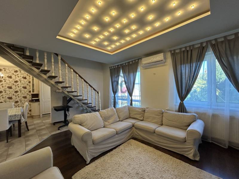 Nyíregyháza belvárosában, belső szintes 122 nm-es belső építész által megtervezett tágas első emeleti klimatizált lakás várja új lakóit.Az ingatlan kétszintes, dupla komfortos, kiváló állapotú burkolatok és szaniterek jellemzik.A két fürdőszoba lehetővé teszi a kényelmes reggeli készülődést, és a családtagok közötti időmegosztást, így mindenki számára elegendő hely áll rendelkezésre.Elosztását tekintve:- az alsó szinten a család élettere került kialakításra,:kényelmes nappali erkéllyel, tágas konyha-étkező magas minőségű beépített bútorokkal, illetve 1 zuhanyzó- WC- az emeleti lakrészben 4 hálószoba , fürdőszoba és külön helyiségben a WC kapott helyetDupla két autó beállásra alkalmas garázs bérelhető az ingatlanhoz további 30.000ft-ért.Az ingatlan több működési funkciója okostelefonról vezérelhető. Fűtése gázcirkó (havi 9000 Ft).Közös költség :9800ftPraktikus élhető otthon zártudvaros társasházban, amely jelenlegi funkcióján kívül alkalmas irodának is a kiváló lokáció miatt.A hirdetésben szereplő információk a megbízótól kapott adatok alapján készültek, pontosságukért felelősséget nem vállalunk! Az alaprajz csak tájékoztató jellegű!Amennyiben vásárláshoz hitelre is szüksége van, független hitel tanácsadónk ingyenesen tud Önnek segítséget nyújtani a legjobb konstrukciók kiválasztásában és a folyamat lebonyolításában. Irodánk kereső ügyfeleinknek teljes körű szolgáltatást nyújt, szakszerű tanácsadással, energetikai tanúsítvány elkészítésével, hitelügyintézéssel és profi ügyvédi segítséggel.Abban az esetben ha az ingatlan felkeltette érdeklődését keressen bizalommal!A bérleti díj 300.000ft/hó+adó + igény esetén bérelhető egy dupla állásos garázs is további 50.000ft-értBeköltözés előtt 1/2 havi bérleti díjnak megfelelő közvetítési díj fizetendő a bérlő részéről.