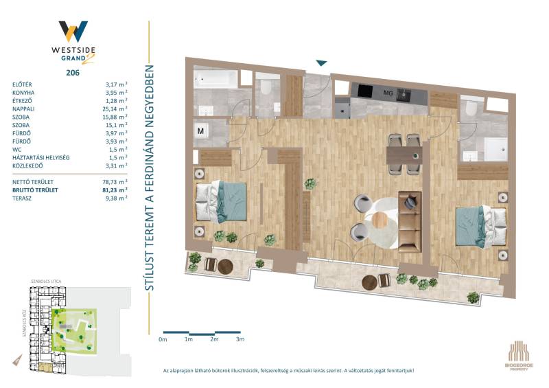 Projekt bemutatásaA projektrőlA Westside Grand I-II. a Biggeorge Property Westside fejlesztés sorozatának - a Westside Residence és a Westside Gardent követően - legújabb tagja.LokációBudapest egyik leggyorsabban fejlődő kerületének központi területén, a XIII. kerületben, a Városligettől és a megújuló Nyugati pályaudvartól sétatávolságra épül. A Nyugati pályaudvar környéke az elkövetkezendő években szinte teljesen megújul, a XIII. kerületben elhelyezkedő Szabolcs utcában, illetve közvetlen környezetében számos új építésű ingatlan épült, melyek jelentős értéknövekedést kínálnak a környéken ingatlant vásárlóknak. A több ütemben megvalósuló lakóingatlanfejlesztések hatalmas zöld parkot ölelnek körül, így a lakók akár az erkélyen ülve is élvezhetik a csendet, nyugalmat és zöld környezetet egy központi, belvárosi környezetben is.
