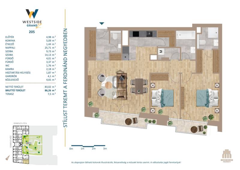 Projekt bemutatásaA projektrőlA Westside Grand I-II. a Biggeorge Property Westside fejlesztés sorozatának - a Westside Residence és a Westside Gardent követően - legújabb tagja.LokációBudapest egyik leggyorsabban fejlődő kerületének központi területén, a XIII. kerületben, a Városligettől és a megújuló Nyugati pályaudvartól sétatávolságra épül. A Nyugati pályaudvar környéke az elkövetkezendő években szinte teljesen megújul, a XIII. kerületben elhelyezkedő Szabolcs utcában, illetve közvetlen környezetében számos új építésű ingatlan épült, melyek jelentős értéknövekedést kínálnak a környéken ingatlant vásárlóknak. A több ütemben megvalósuló lakóingatlanfejlesztések hatalmas zöld parkot ölelnek körül, így a lakók akár az erkélyen ülve is élvezhetik a csendet, nyugalmat és zöld környezetet egy központi, belvárosi környezetben is.