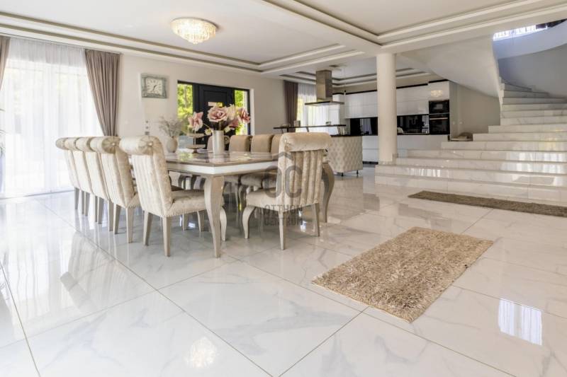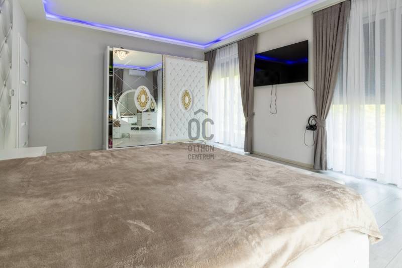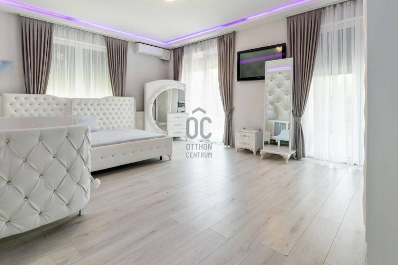 Új tulajdonosát keresi egy nagyszerű adottságokkal rendelkező, luxus igényeket is kielégítő, kétszintes, buttó 300 m2-es családi ház a III. kerületben!Ha nagyon kedvelt és keresett környéken szeretné megtalálni új, modern otthonát, ezt a házat feltétlenül nézze meg!AMIT A HÁZRÓL TUDNI KELL:- A két szintes lakóház 2022-ben épült egy parkosított, 823 m2-es telken.- Falazata Porotherm 30 X-therm tégla, 15 cm-es szigeteléssel. - Hasznos alapterülete 240 m2, a hozzá tartozó teraszok, erkélyek mérete 120 m2, bruttó mérete 300 m2.- Az épület luxus igényeket is kielégít, tulajdonosai extra minőségű anyagokat használtak az építésénél és a berendezéseknél is.- A szimmetrikus elrendezésű épület megjelenésese a modern stílus és a klasszikus elegancia tökéletes ötvözete. - Modern vonalvezetése, letisztult fehér homlokzata és a markáns, sötét színű nyílászárói prémium megjelenést kölcsönöznek. - Az épület a tájolásából adódóan, körbenapozott, szobái tágasak és világosak.- A műanyag ablakok elektromos, alumínium redőnnyel felszereltek.- A 120 m2-es földszint felosztása: hatalmas amerikai konyhás nappali és étkező, fürdőszoba wc-vel.- A hatalmas nappalit és az emeletre vezető impozáns lépcsőt Carrarai márvánnyal burkolták, ami egyedi stílust kölcsönöz a belső térnek.- Földszinti lakótér 120 m2 + összesen 61,84 m2 terasz.- Az emelet felosztása: közös nappali, 3 erkélyes szoba, közlekedő, fürdőszoba wc-vel.- Emelet 120 m2 + összesen 60 m2 terasz.- A fűtést és a meleg vizet kondenzációs kazán biztosítja padlófűtéses hől-eadással, így nincsenek látható fűtőtestek a házban.- A hűtésről minden szobában klíma gondoskodik.- Az ingatlan logikus elosztása és térkihasználása miatt kényelmes életteret biztosít.- A kert szépen gondozott, automata öntözővel, hátsó intim kertjében grillező lett kialakítva.- A térkövezett előkertbe gépkocsival széles kapun keresztül lehet beállni, ahol 6 autó számára van parkolási lehetőség.- A beépített bútorok - gépesített konyha a vételár részét képezik, a többi prémium kategóriájú bútor megegyezés tárgyát képviselik.KÖRNYÉK és KÖZLEKEDÉS:- Budapest III. kerülete, Rómaifürdő közkedvelt családi házas övezete.- A környék kimondottan családias jellegű, biztonságos, rendezett, csendes, tele zöldterületekkel, kutyabarát parkokkal, játszóterekkel. - A közlekedés a területen jó, a háztól 6 perc sétára található a 134-es, 34-es, buszok és a a H5-ős hév megállója.- Budapest egyik legszebb strandja a Római Strandfürdő 2 percnyi séta távolság.- A Római-part / Duna part 900 méter a háztól, ahol számos étterem és kulturális programok széles választéka várja a kikapcsolódni vágyókat.- Aldi, Spar, Lidl és a Csillag Center bevásárló központ pár perc alatt elérhető.- A Kisvirág Bölcsőde 900 méterre, Óvoda 400 méterre, a MOA Magán Általános Iskola 135 méterre található.- Számos neves iskola, óvoda, sportközpont és egészségügyi intézmény található a közelben.AZ INGATLAN MEGTEKINTHETŐ:- Személyesen,- Online, személyes bejelentkezéssel.FINANSZÍROZÁSBAN ONLINE ÜGYINTÉZÉSSEL IS SEGÍTÜNK!- Többszörösen díjnyertes irodánk hitelszakértői 20 éves szakmai tapasztalattal várják, előre egyeztetett időpontban akár normál munkaidőn kívül is.- Bank-független Hitel Centerünk díjmentesen versenyezteti minden bank és hitelintézet kínálatát, hogy önnek a legmegfelelőbb konstrukciót megtaláljuk.- Egyedi igényekre szabott, csak nálunk elérhető egyedi ajánlatokkal, fogyasztóbarát lakáshitelekkel, babaváró hitellel, teljes körű CSOK PLUSZ ügyintézéssel állunk rendelkezésére.Érdeklődés esetén VÁROM HÍVÁSÁT a hét minden napján!