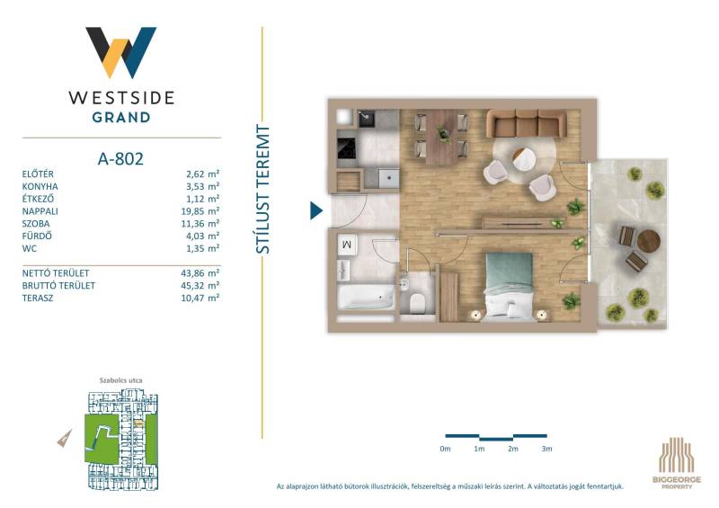 Projekt bemutatásaA PROJEKTRŐLA Westside Grand I-II. a Biggeorge Property Westside fejlesztés sorozatának - a Westside Residence és a Westside Gardent követően - legújabb tagja.LOKÁCIÓBudapest egyik leggyorsabban fejlődő kerületének központi területén, a XIII. kerületben, a Városligettől és a megújuló Nyugati pályaudvartól sétatávolságra épül. A Nyugati pályaudvar környéke az elkövetkezendő években szinte teljesen megújul, a XIII. kerületben elhelyezkedő Szabolcs utcában, illetve közvetlen környezetében számos új építésű ingatlan épült, melyek jelentős értéknövekedést kínálnak a környéken ingatlant vásárlóknak. A több ütemben megvalósuló lakóingatlanfejlesztések hatalmas zöld parkot ölelnek körül, így a lakók akár az erkélyen ülve is élvezhetik a csendet, nyugalmat és zöld környezetet egy központi, belvárosi környezetben is.