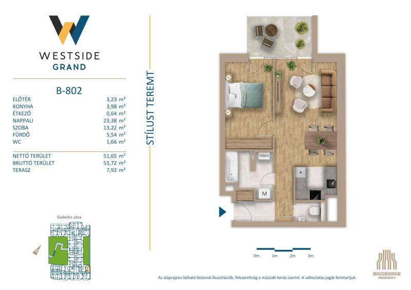 Projekt bemutatásaA PROJEKTRŐLA Westside Grand I-II. a Biggeorge Property Westside fejlesztés sorozatának - a Westside Residence és a Westside Gardent követően - legújabb tagja.LOKÁCIÓBudapest egyik leggyorsabban fejlődő kerületének központi területén, a XIII. kerületben, a Városligettől és a megújuló Nyugati pályaudvartól sétatávolságra épül. A Nyugati pályaudvar környéke az elkövetkezendő években szinte teljesen megújul, a XIII. kerületben elhelyezkedő Szabolcs utcában, illetve közvetlen környezetében számos új építésű ingatlan épült, melyek jelentős értéknövekedést kínálnak a környéken ingatlant vásárlóknak. A több ütemben megvalósuló lakóingatlanfejlesztések hatalmas zöld parkot ölelnek körül, így a lakók akár az erkélyen ülve is élvezhetik a csendet, nyugalmat és zöld környezetet egy központi, belvárosi környezetben is.