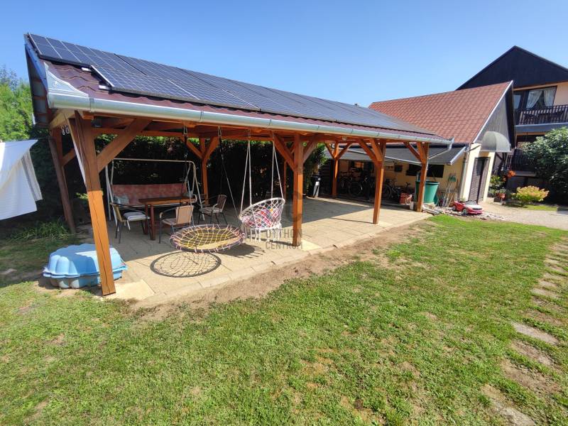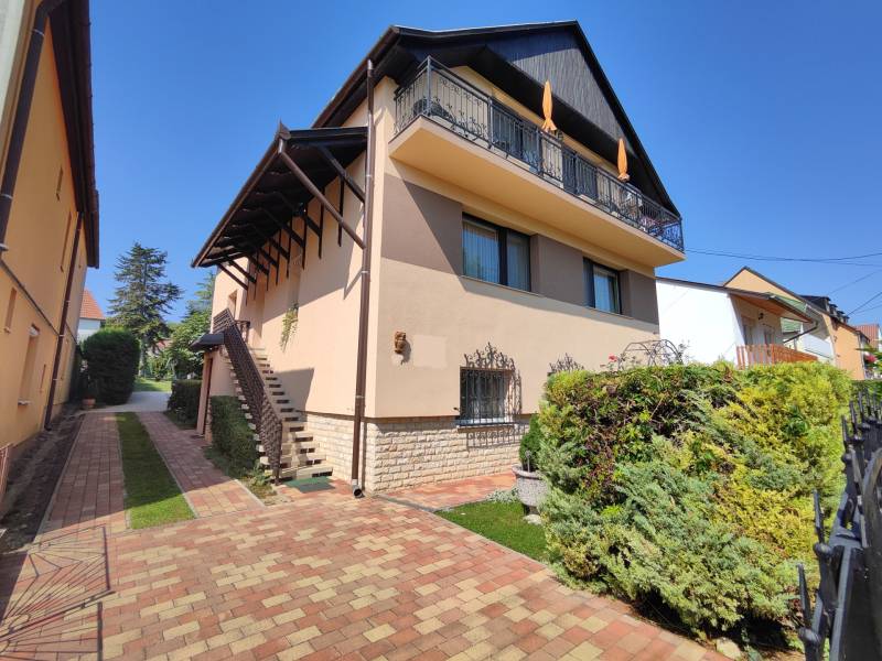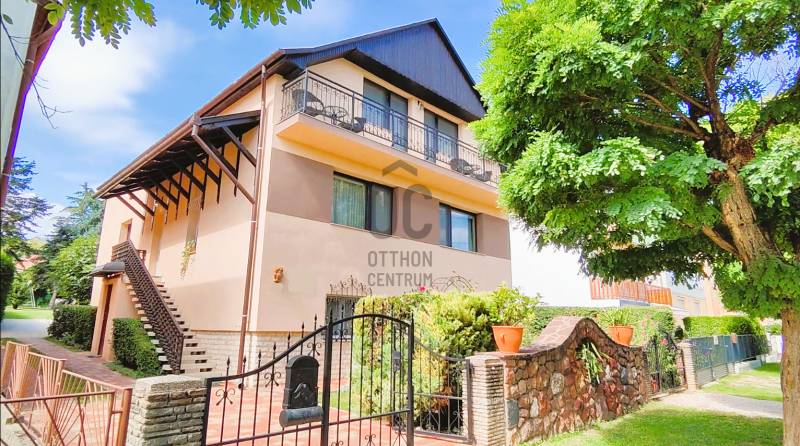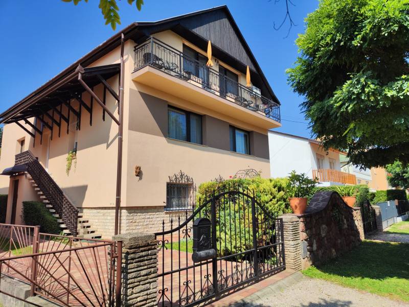 Kiemelt megbízás kizárólag irodánk kínálatában!A 795 m2-es telken elhelyezkedő ingatlan Hévíz egyik kedvelt csendes utcájában található. A jelenleg magánszálláshelyként is működő családi ház kiválló választás befektetésnek vagy akár több generációs lakhatásra is.A 88 m2-es két bejárattal rendelkező középső szinten, lépcsőház, közlekedő, előszoba, tágas nappali konyhával és étkezővel, kamra, fürdőszoba, WC, 2 hálószoba, erkély kapott helyet.A külső és belső bejárattal is megközelíthető 113 m2-es alsó szinten található nagy tároló, kazánház, illetve egy apartman melyben egy konyha-étkezővel, kamra, közlekedő, fürdőszoba/WC, 2db fél szoba, terasz került kialakításra. A legfelső 83 m2-es szinten 2 apartman található, az egyikben konyha-étkezővel, hálószoba, fürdőszoba, WC, erkély. A másikban konyha-étkezővel, 2 hálószoba, Fürdőszoba, WC erkély lett kialakítva.A ház melegéről gáz és vegyestüzelésű kazán, a középső szinten ezek mellett cserépkálya is gondoskodnak, a nyári melegekben pedig klímák a hűtésről.Az udvarban továbbá található egy fedett tásalgó, garázs és 3 fedett kocsibeálló.A ház pár éve 10cm-es külső szigetelést, a kocsibeállók tetején pedig 4 KW-os napelem rendszert kapott.A bútorok megállapodás szerint.Ha a hirdetés felkeltette figyelmét, megtekintés céljából hívjon bizalommal!Az ingatlan a központtól autóval 1 percre, Keszthely központja 8, a Balaton pedig 9 km-re található! Több gyógyfürdő is található a környéken.Így bármely évszak legyen, bármely korosztály számára kikapcsolódási lehetőséget jelenthet ezen fürdők SZÉLES SKÁLÁJÚ WELLNESS SZOLGÁLTATÁSAI! Csodálatos zöld környezetben várja Önt a világon egyedülálló Hévízi gyógytó. A tó körül elterülő erdős parkok és a város védett növényvilága a nyugodt pihenés és gyógyulás záloga. A fürdőváros tiszta levegője és barátságos atmoszférája, az itt-élők vendégszeretet mind fokozzák a gyógyhatást. A tó egész évben várja vendégeit, mivel a víz hőmérséklete télen sem csökken 22 C° alá, nyáron pedig eléri a 38 C°-ot is. A forrásbarlangból másodpercenként előtörő 410 liternek köszönhetően a tó vize három és fél nap alatt teljesen kicserélődik, ezáltal folyamatosan tiszta marad.