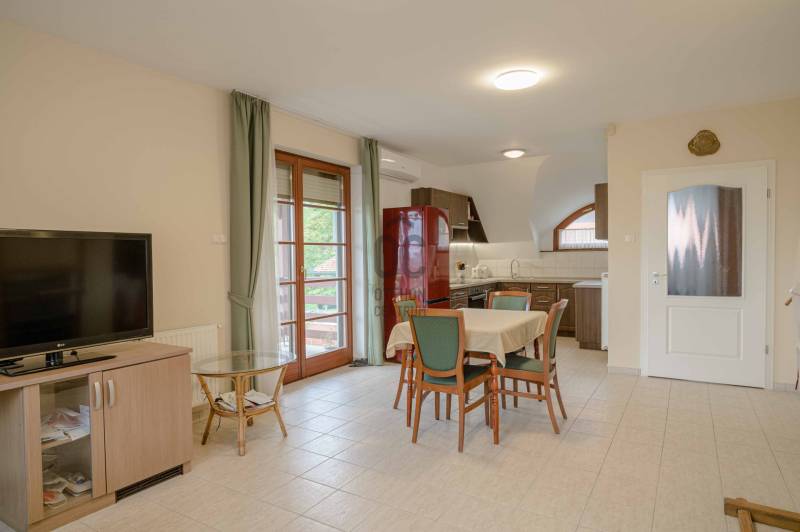 Eladásra kínálunk egy 71 m²-es, hangulatos, erkélyes lakást Alsópáhok rendezett, csendes lakóparkjában saját parkolóhellyel.Az ingatlan praktikus elrendezésének köszönhetően kiváló választás állandó otthonnak vagy nyaralónak.Az előszobában és a nappaliban kerámia padlóburkolat van, a két hálószobában padig parketta.Erkély panorámával2 kényelmes hálószobaTágas nappali-konyha-étkező egy légtérbenFürdőszoba és Wc egy helyiségbenModern konyhai gépek (főzőlap, sütő)A lakás műszaki tartalma:- Vaillant gaz kazán, klíma- Dupla üvegű hőszigetelt fa nyílászárók- Redőny és szúnyogháló minden ablakonA lakópark:- Elektromos kapuval zárt- Rendezett, gondozott kert.A csendes, biztonságos környezet, egyedülálló lehetőséget kínál azoknak, akik kellemes környezetre vágynak.Az alaprajz tájékoztató jellegű.