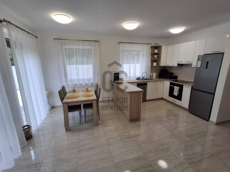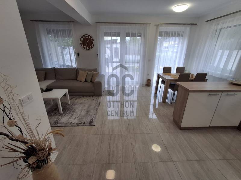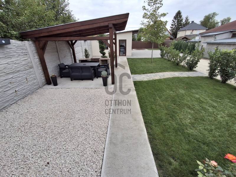 Eladó modern családi ház Cegléd kertvárosában – garázzsal és terasszalElhelyezkedés: Nyugodt, kertvárosi környezet Cegléden, kiváló választás családok számáraIngatlan főbb jellemzői:- Építés éve: 2021- Szerkezet: Porotherm 30-as tégla, 15 cm hungarocell szigeteléssel- Födém: fafödém- Hasznos alapterület: 80 nm- Helyiségek elosztása: Tágas nappali – konyha – étkező egy légtérben, 2 hálószoba- Terasz- Garázs- Parkosított udvar- Kondenzációs kazán padlófűtéssel- Műanyag, fa hatású nyílászárók- Elektromos redőnnyel és szúnyoghálóval felszerelve- Kiemelt előnyök:- Korszerű építés és szigetelés, alacsony rezsi- Modern, praktikus elrendezésA hirdetésben szereplő információk a megbízótól kapott adatok alapján készültek, pontosságukért felelősséget nem vállalunk! Irodánkban teljes körű ügyintézéssel, ingyenes , bankfüggetlen hiteltanácsadással várjuk!Amennyiben felkeltette érdeklődését a lakás, kérem, keressen bizalommal!