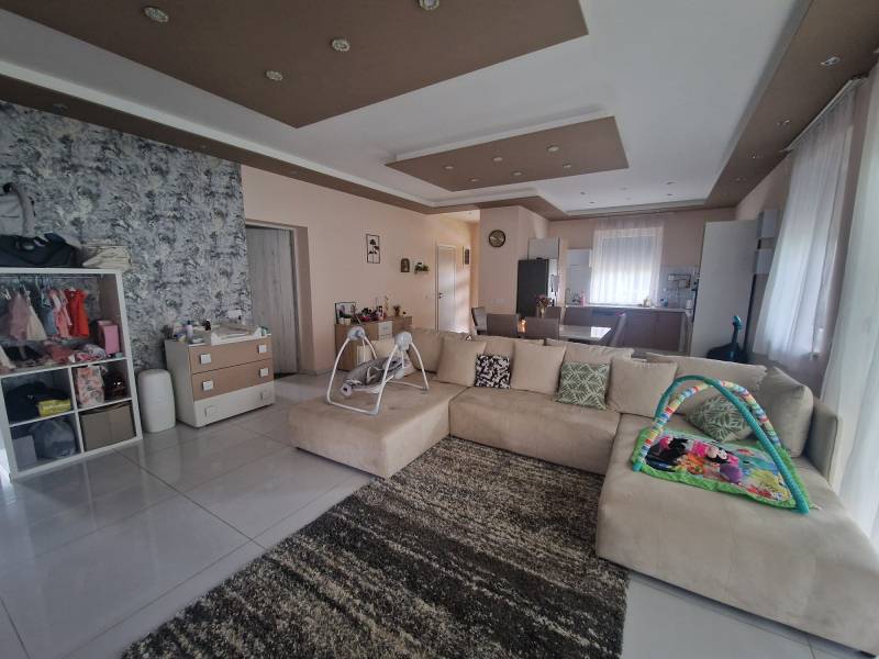 Eladó Dabas városunkban , önálló 93nm.-es lakótérrel+17 nm garázzsal újszerű családi ház.Az épület 4 éve épült ,téglából , 10 cm.-es szigeteléssel, minden újszerű még .Garázskapcsolat a lakótérrel , mely,fűthető .Az ingatlanra már csak egy szép szín , ami tetőfokára emelné .Telke sarki , két bejárat is biztosított így .Udvara parkosított, folyamatos a burkolása. Automata öntözőrendszerrel, fúrt kútról történik az öntözése a gyönyörű fűnek.Kis játszótér és tágas terasz biztosítja a család pihenését,kikapcsolódását.Kapuja egyedi kovácsolt vas. Elektromossága kiépítve.Az ingatlan amerikai konyhás megoldással 3 háló szobával épült meg, melyből az egyiket jelenleg gardrobe-nak használnak.Belső kialakítása modern kivitelezés. Tágas fürdővel rendelkezik.Konyhája gépesített.Fűtése kombi kazánról padlófűtés rendszerű.Nappalijából léphetünk ki a tágas teraszra. Ablakok szúnyoghálóval és redönnyel ellátottak. Terasz ajtó elektromos redönyt kapott.Érdeklődés esetén hívjon bizalommal:Sponga Mária067o431ooo7