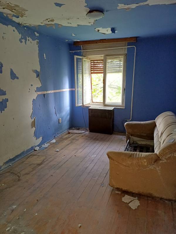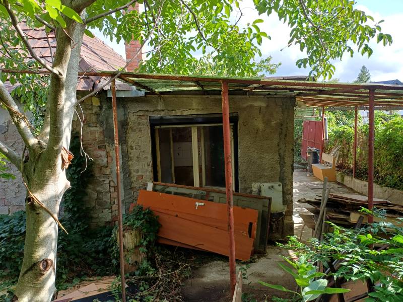 Pilisvörösváron, közel a vasútállomáshoz eladó egy teljesen felújítandó, 50 nm alapterületű téglaház 393 nm-es, hangulatos kerttel.A ház régóta nem lakott. Víz, villany, gáz, csatorna van, de a mérőórák (vízóra kivételével) leszerelésre kerültek. Villanyóra újra igényelve van.Kialakítása: előtér, 2 szoba, konyha+étkző, fürdőszoba, WC.A telek enyhén lejtős, nagyrészt zöld növényzettel teli.A szomszédos ingatlan is eladó (48 m), így akár egyben is megvehető jelenleg még. (Egyben már 900 nm-es a telek!)Az épület felújítása megkezdődött, ahogy haladnak a munkákkal, úgy fog változni az ingatlan ára.További kérdéivel hívjon telefonon.