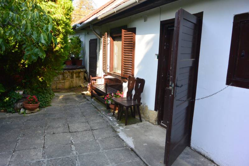 Eladó egy présház jellegű sváb falusi porta és pince együttes a XII. kerületben.A Svábhegy szőlészeti és borászati hagyományainak egyik utolsó hírnökeként műemléki védelmet élvez.A présházat lakóházzá alakították, de az eredeti építészeti forma és stílus jegyeket megőrizték.Megmaradt a látványos pince és az egykori helyi szőlő művelési kultúrára jellemző támfalas-teraszos kert.Az 1830-as években épült házban két társasházi lakás található külön lekerített kertrésszel. A hangulatos, ősfás, teraszos kert kb. 900 m2.Az eladásra kerülő ingatlan:- 33 m2-es 2 szobás lakás. (Az egyik szoba jelenleg az udvarról nyílik és teljesen felújítandó.)- 2 db pince - összesen 50 m2 (Az egyik pince elölről nyitott és felújítást-helyreállítást igényel. Feltehetőleg ennek mérete a jelenleg láthatónál jóval nagyobb)- kő és tégla falazat (60 cm vastag) 5 cm hungarocell szigeteléssel.- elektromos fűtés- buszmegálló 300 méteren belül található. (21, 21A, 212, 221)- fogaskerekű megálló 400 méter- bevásárlási lehetőség 400 méterAlkalmas lehet idegenforgalmi - vendéglátási célra, borpincének, rendezvény helyszínnek.