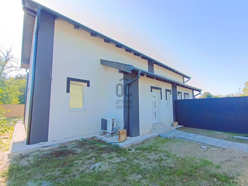 Vasadon, központ közeli, 3% os hitelre is alkalmas, új építésű ikerházfél eladó. 110 m2-en, amerikai konyhás nappali, 4 hálós, dupla komfortos kialakítással. Az ingatlanok saját utcafronttal rendelkeznek, így nincs átjárás egymáson, saját telke 280 m2. Az épület használatbavételi engedéllyel és társasházi alapító okirattal rendelkezik és azonnal költözhetőSzerkezete Porotherm 30-as téglából épült mely 10 cm-es grafitos szigetelést kapott, nyílászárói 3 rétegű műanyag szerkezetek. Energetikai besorolása: A+Földszinten előszoba, amerikai konyhás nappali, gépészeti helyiség, 1 kényelmes háló és zuhanyzós fürdő került kialakításra. Kertünket egy 14 m2-es teraszon keresztül érjük el. Emeletére kényelmes lépcsőn juthatunk fel, ahol 3 db 12 m2 körüli háló és egy kádas fürdőszoba kapott helyet. Fűtése hőszivattyúval és padlófűtéssel történik. Minden lakóhelyiségben klíma előkészítés található és természetesen H” tarifás mérőóra is van.Az ingatlan összközműves, gázcsonk a telken belül található.Vasad Budapesttől 15 percre található, élhető kedves település, az ingatlan elhelyezkedése kiváló, suli, ovi, bolt pár perc sétányira van.Díjmentes hitelügyintézéssel és jogi tanácsadással segítjük a vásárlását!