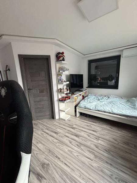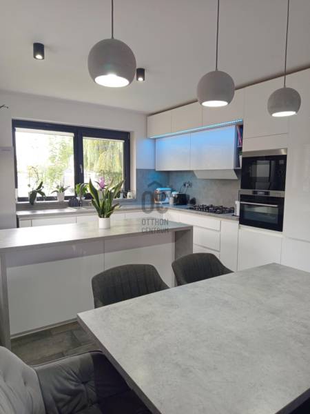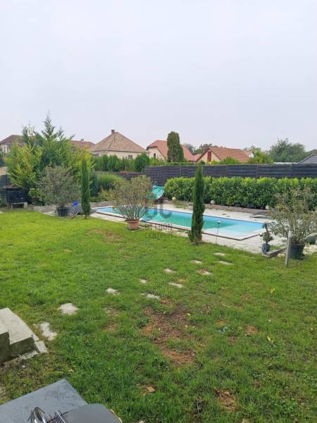 Tatán, egy csendes, mégis központi elhelyezkedésű részen kínálunk megvételre egy kivételes adottságokkal rendelkező, 1990-ben épült, 230 m²-es, kétszintes tégla családi házat, amely egy 784 m²-es, teljesen körbekerített, elszeparált telken helyezkedik el.Főbb jellemzők:230 m² lakótér / kiváló elosztásFöldszint:Tágas előszobaMosókonyhaSzoba (jelenleg \"konditeremként\" funkcionál a tulajdonosoknak, szoláriummal és tusolóval ellátva, mely a vételár részét képezi)Külön WCTágas, amerikai konyhás nappali, klímával felszerelveEmelet:3 különnyíló hálószoba, mindegyik saját gardróbhelyiséggelFürdőszoba - WC3 szoba klímával ellátvaExtrák, amik emelik a komfortot:PadlófűtésElektromos redőnyök3 rétegű nyílászárók2 beállásos garázs elektromos garázskapukkalÉpített, fűthető medence (9 x 3,5 m)Automata öntözőrendszerLapos tető – zöldtető kialakíthatóTöbb autó számára parkolási lehetőségA ház kiváló műszaki állapotban van, mindössze a külső színezés van hátra. Az udvar teljesen zárt és intim, kíváncsiskodó tekintetek kizárva, ideális gyermekes családoknak vagy nyugalmat keresőknek. Nagyon kedves, barátságos szomszédokkal körülvéve.Kinek ajánljuk?Ez az ingatlan tökéletes választás azoknak, akik luxus szintű kényelmet, kiváló elhelyezkedést és igényes kivitelezést keresnek egy tágas, jól megtervezett otthonban – mindezt Tatán, a város egyik legjobb részén!Amennyiben felkeltette érdeklődését az ingatlan, további információért illetve megtekintéssel kapcsolatban várom hívását.