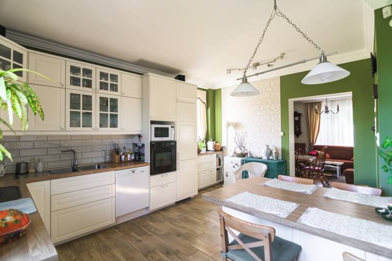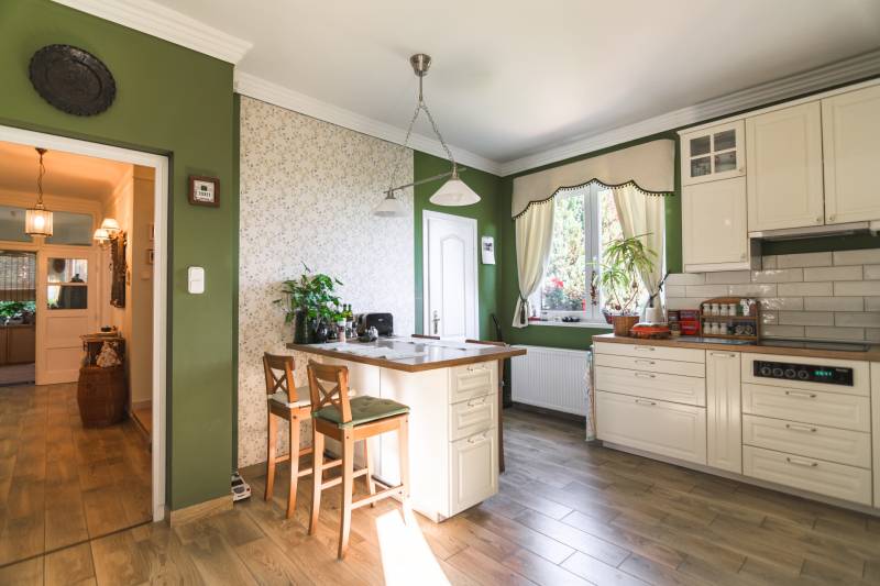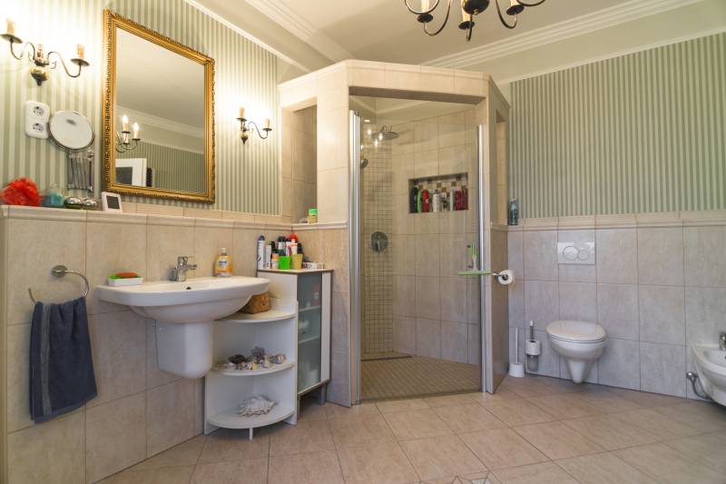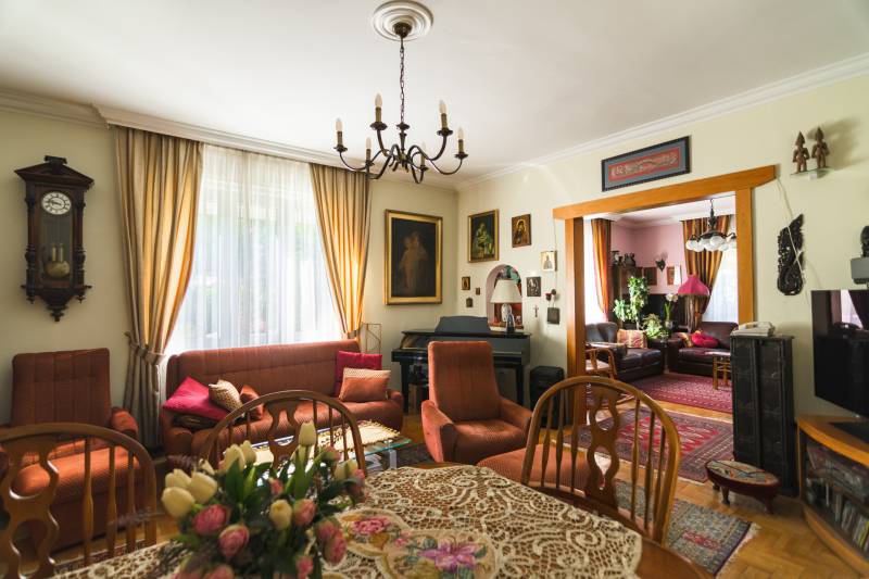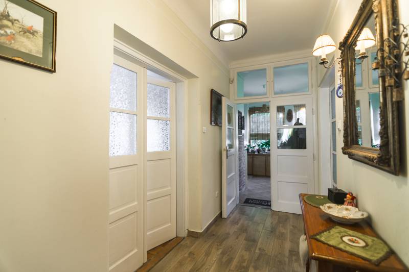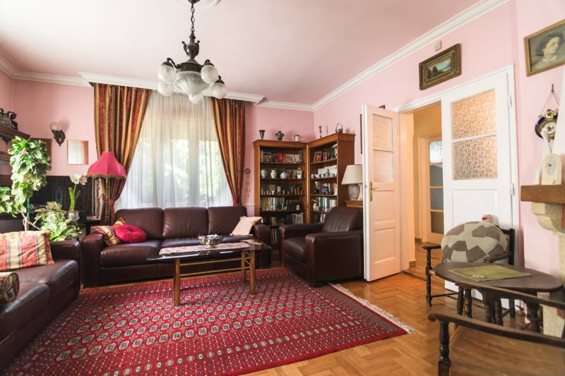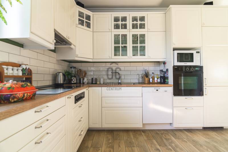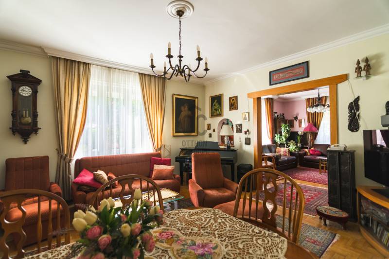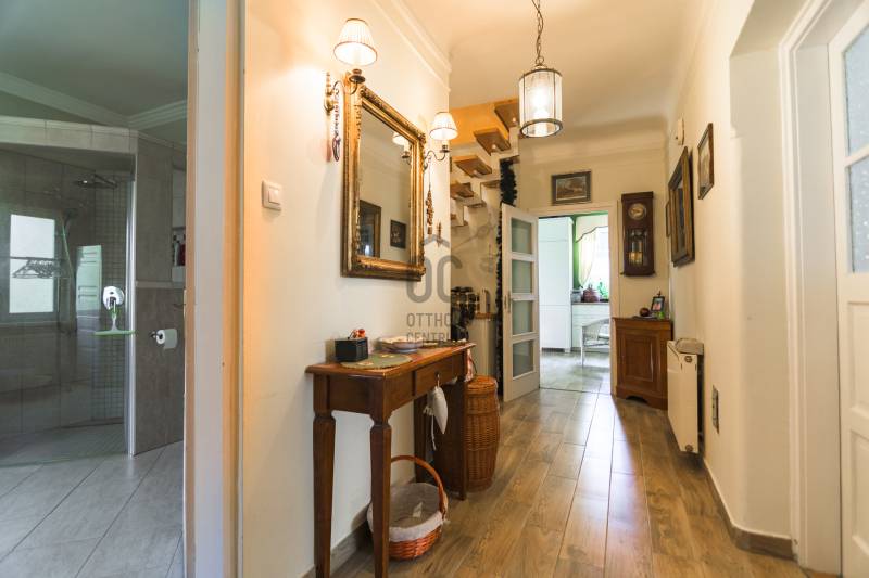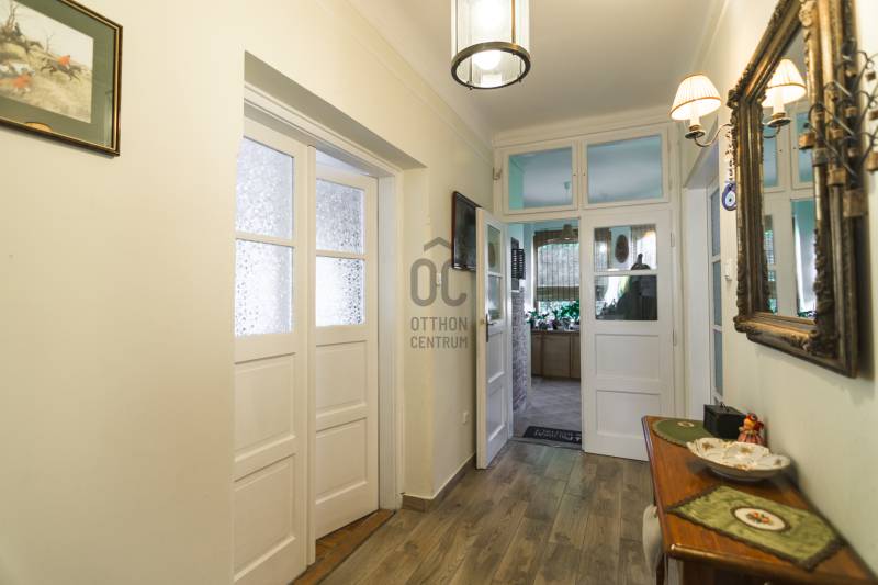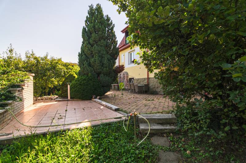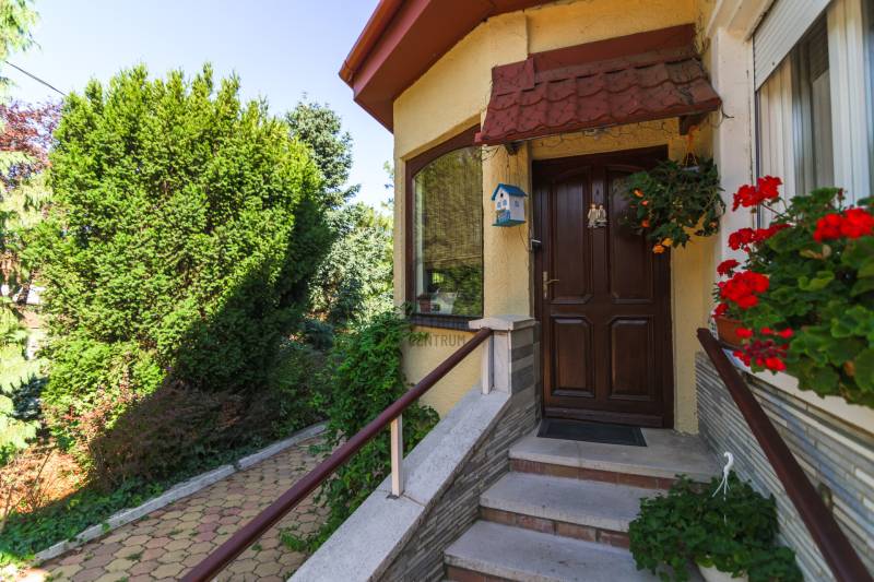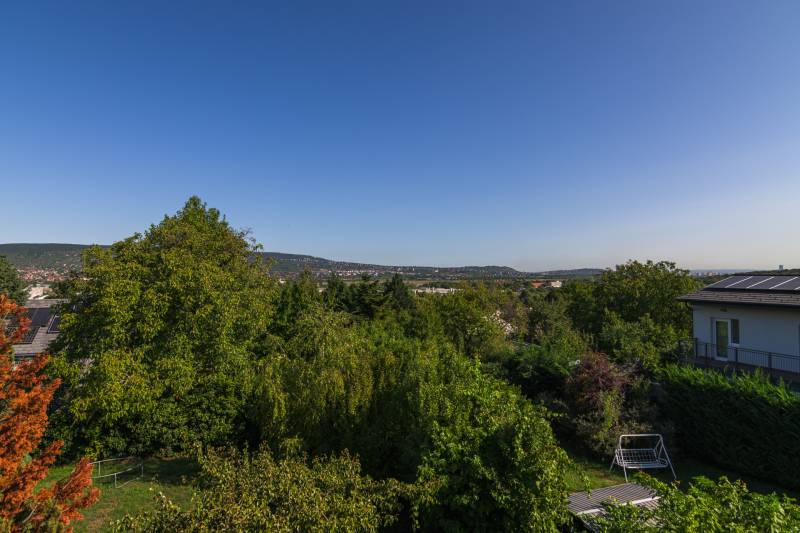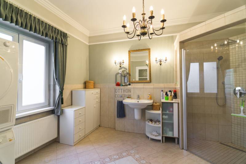 Budaörs Kamaraerőn, a hely egyik legkedveltebb, elegáns utcájában eladó egy otthonos kialakítású, 6 szobás felújított családi ház.A modern polgári stílusú ház praktikus és tetszetős belső kialakítását lakberendezői tervek alapján kivitelezték. A földszinten ízléses, kandallós, hagyományos stílusú nappalit, hozzá kapcsolódó társalgót, modern, ikea berendezéssel rendelkező konyha-étkezőt, kamrát és  hatalmas, nagy ablakos világos fürdőszobát találunk. Az emeleten négy nagy méretű  hálószoba (ezekből kettő terasz-kapcsolatos), világos fürdőszoba, külön WC van. Az emeleti teraszról a budaörsi panorámában gyönyörködhetünk. A  lakótér alatt több helyiségből álló félszuretén/pince található, amely praktikus tárolási lehetőséget biztosít, és itt akár kondiszoba is kialakítható. A ház egy nagyobb család igényeit is kiszolgálja. A házban lévő meleg- és hidegburkolatok jó minőségűek, újszerű állapotúak. A fűtés korszerű, zárt égésterű kondenzációs gázkazánról üzemel. Mindkét lakószinten split klíma is üzemel. A ház 380V-os ipari árammal is ellátott és külön mért éjszakai árammal is rendelkezik. A tető 5 éves, a külső nyílászárók újak; a belsők újak, illetve a ház stílusát megtartva modernizálásra, felújításra kerültek. Ez az otthon remekül élhető. A  házat 1170 m2-es ősfás kert öleli körbe, amely a szomszédok irányából és az utca felől is elrejtett. A gépkocsik beállóhelye a pihenőkerttől látványilag elkülönül. A kertben lévő pince és a verem ideálisak bor tárolására, a terasz és a kert pedig extra lehetőségeket biztosít a kikapcsolódásra. A tömegközlekedés kiváló: a díjmentes utazást biztosító budaörsi helyi buszjárat megállója a közelben található, a BKK járatainak megállói pedig pár perc sétával elérhetők. Az M7, M1, M0 autópályák, bevásárlóközpontok 10 perc alatt megközelíthetőek. Óvoda, iskola, művelődési ház a közelben van. A környék jó levegőjű, igazi kertvárosi hangulatú - sétálásra, kikapcsolódásra, feltöltődésre alkalmas. Vadonatúj ajánlat!További részletek és a megtekintés miatt keressen bizalommal! Hétvégén is hívhat.