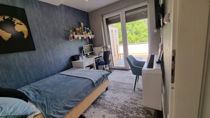 Debrecen egyik legkeresettebb, fiatalos kertvárosi övezetében, a Köntöskertben eladó egy 140 m²-es, kétszintes családi ház,  amely nemcsak otthonként, hanem értékálló befektetésként is kiemelkedő választás.Földszint:- tágas nappali étkező-konyhával- nagyméretű fürdőszoba, külön WC- gardróbszoba- garázs (16 m²)- nappaliból nyíló, 20 m²-es fedett teraszEmelet:- 3 hálószoba- fürdőszoba + WC- gardróbszoba- két erkély (26 m² és 12 m²), félig fedett kialakítássalMűszaki megoldások:- Porotherm falazat + hőszigetelés- műanyag nyílászárók alu redőnnyel- gázkazán fűtés padló- és radiátoros rendszerrel- hűtő-fűtő klíma- vízlágyító berendezés- központi porszívó kiállás- riasztó - és napkollektor előkészítésIgényesség minden részletben:* prémium, egyedi nyílászárók, burkolatok* Konyhalux által tervezett, minőségi konyhabútor Whirlpool beépített gépekkel* udvaron 20 m²-es szigetelt tárolóLokáció:A ház környezete kertvárosias, mégis közel a belvároshoz és az autópálya-felhajtóhoz (BMW-gyár pár perc). Iskola, óvoda, bolt, Lidl, Tesco, Spar néhány percre, így a mindennapok kényelmesen megoldhatók.Ez az otthon a kifinomult ízlés és a praktikum találkozása, ahol a minőségi kivitelezés, a modern technikai megoldások és a kiváló elhelyezkedés biztosítják hosszú távon az értékállóságot.Hívjon, ha szeretné megtekinteni!