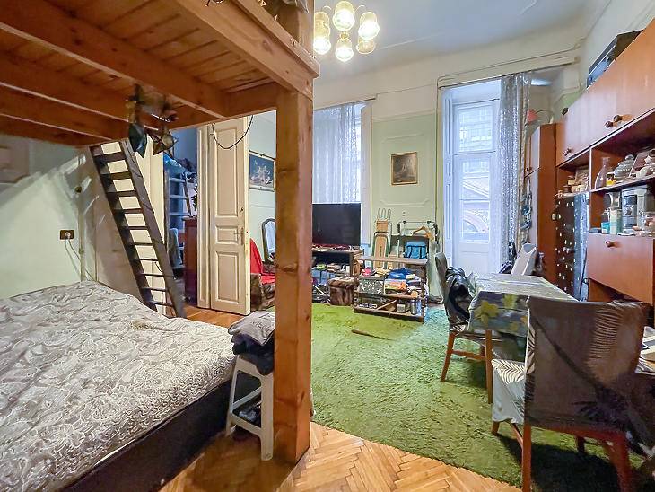 Palotanegyedben, parkosított kerttel rendelkező, liftes társasházban erkélyes, 1.emeleti lakás eladó.Az ingatlan két szobás, konvektoros fűtéssel rendelkezik. A 3.9 méteres belmagasságot kihasználva állógaléria van a szobákban. Fürdőszobája kádas, a melegvizet elektromos bojler biztosítja.A közös költség 20.026.-Ft, minden egyéb fogyasztás egyedileg mérhető.A lakás déli fekvésű, ezáltal szobái egész nap világosak.A közelben több étterem és kávézó, a Mikszáth tér és a Fővárosi Szabó Ervin Könyvtár. Számos bevásárlási lehetőség található a környéken, LIDL és ALDI áruház. A tömegközlekedés kiváló, sétatávolságra található a Kálvin téri M3-as és M4-es metró csomópont állomása, a József körúton a 4-6-os villamos és számos buszhálózat is.Az adatok tájékoztató jellegűek. Vevőink részére a közvetítés díjtalan.