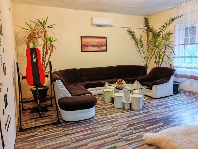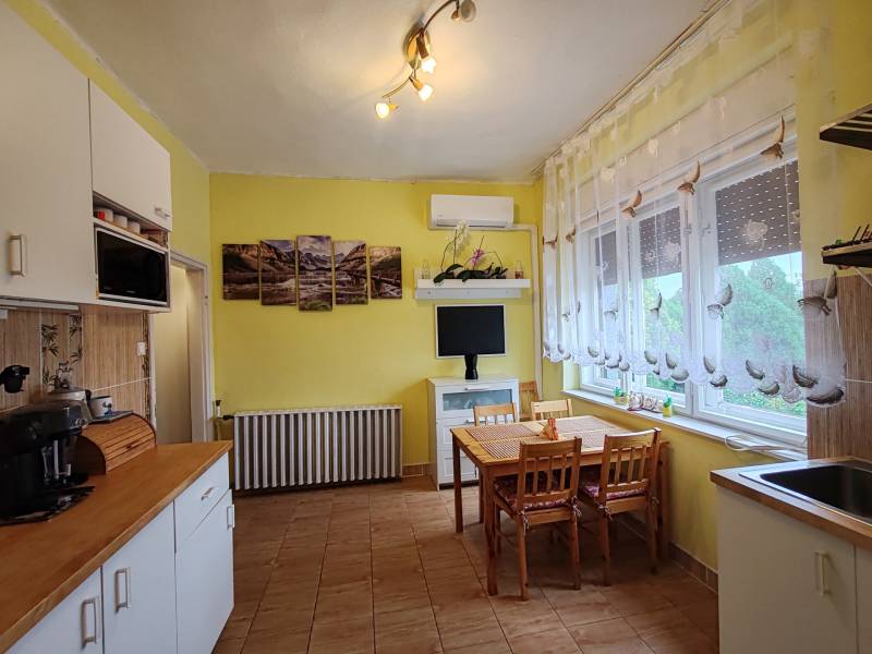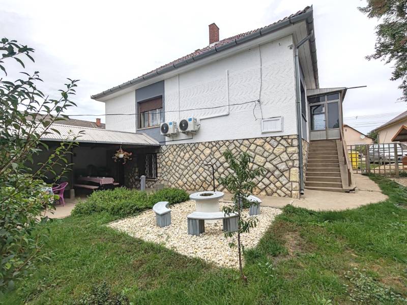 Balatonszabadi csendes, de kiválóan megközelíthető részén, a központ közelében kínálunk megvételre egy 146 m²-es, masszív szerkezetű, téglaépítésű családi házat. Az ingatlan egy óriási, 4283 m²-es parkosított telken helyezkedik el, amely gazdálkodásra, kertészkedésre, vagy akár állattartásra is kiválóan alkalmas – a hozzá tartozó több melléképület ennek minden feltételét biztosítja.A művelendő földterület jelenleg is bérbe van adva, művelik.A lakótér a magasföldszinten helyezkedik el, ahol 3 tágas szoba, fürdőszoba, külön WC, világos konyha kamrával és előszoba került kialakításra.illetve a szélfogó.A ház fűtéséről gázcirkó kazán, valamint négy db modern, hűtő-fűtő klímaberendezés gondoskodik – utóbbiak mindössze 2 évesek és kiváló állapotban vannak.Az alsó szinten – szuterénben – tágas garázs, kazánház, tárolók, pince és mosókonyha is rendelkezésre áll, így rengeteg praktikus tárolóhelyet biztosít a mindennapokhoz.A ház mögött fedett terasz, új bográcsozó és sütögető, valamint fából készült filagória (szaletli) szolgálja a kellemes időtöltést. A kertet 2 különálló kerti csap segíti a locsolásban.Az ingatlan részben felújított – a tetőszerkezetet 10 éve teljes egészében felújították, a nyílászárók azonban még az eredetiek. A kétsoros 50 cm vastag  tégla falazat azonban kiváló hőszigetelést biztosít, így a ház utólagos szigetelése nem feltétlenül szükséges. Az ingatlan 3%-os hitelre is alkalmas!Amennyiben felkeltette érdeklődését, hívjon bátran a hét bármely napján, akár hétvégén is!Miért érdemes Balatonszabadiban ingatlant vásárolni?Balatonszabadi a Balaton déli partjától csupán pár percre, Siófoktól mindössze 5 km-re található, így ideális választás lehet mindazok számára, akik a természetközeli, nyugodt falusi életet keresik, de nem szeretnének lemondani a város közelségéről sem. A település folyamatosan fejlődik, családbarát környezetet kínál, kiváló közlekedéssel, boltokkal, iskolával és óvodával. A környék remek lehetőséget kínál kirándulásra, kerékpározásra vagy a Balaton közelségének élvezetére.