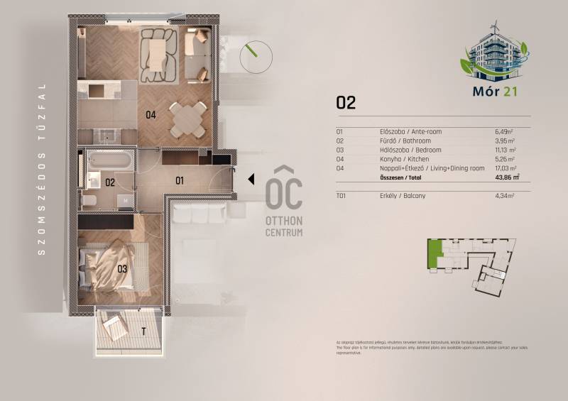 Projekt bemutatásaA Mór utca és Dévényi utca sarkán, egy hangulatos saroktelken épül fel ez a 23 lakásos, modern megjelenésű, mégis a környezetébe harmonikusan illeszkedő társasház. A kivitelezés során kiemelt figyelmet kapott a benapozás, a jól élhető terek kialakítása, valamint a magas műszaki tartalom.Az épület földszint + 5 emelet kialakítású, pinceszinttel, ahol teremgarázs és tárolók is helyet kaptak. Minden szinten ergonomikusan megtervezett, kiváló elosztású lakások találhatók, jellemzően 42–90 m² közötti alapterülettel. A legtöbb lakáshoz saját loggia, erkély vagy terasz tartozik – a felső szinten exkluzív nagy teraszos lakások kerültek kialakításra.A társasház minden szempontból megfelel a mai kor elvárásainak:– 23 parkolóhely (12 a pinceszinten, 11 a földszinten), Elektromos autó töltési lehetőséggel– 6 tároló,– zöldtető és közösségi tetőkert,– geotermikus hőszivattyús fűtés és hűtés,– padlófűtés, fan-coil hűtés,– háromrétegű nyílászárók, korszerű hő- és hangszigetelés,– liftes megközelítés minden szinten.Az épület anyaghasználata prémium minőségű: terrakotta árnyalatú burkolólapok, világosszürke betonhatású elemek és szignálfehér falfelületek teszik igazán különlegessé a házat.A kiváló infrastruktúrájú környék – Jász utca, Lehel út, Róbert Károly körút, M3-as közelsége – garantálja a gyors közlekedést, míg a környező parkok, új fejlesztések és szolgáltatások emelik a lakók életminőségét.Ez a projekt ideális választás lehet városi otthont keresőknek, tudatos befektetőknek és azoknak, akik értékelik a magas minőséget és az élhető, modern lakókörnyezetet.