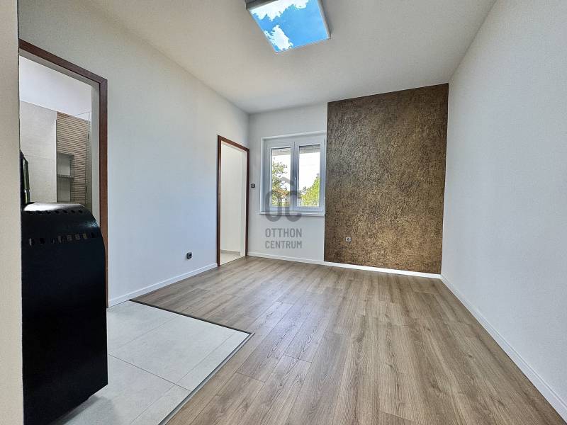 Nagyon jó elhelyezkedéssel, rendezett utcában, szép környezetben!Teljeskörűen felújítva, csak neked!Itt nem kell bajlódnod semmivel, azonnal költözhetsz, ráfordítás nélkül!- Győr kertvárosias, külterületi övezetében- Sashegyen, az Ipari Park felőli oldalon- Rendezett, zömében állandó lakosokkal rendelkező területen- Ideális, gondozható nagyságú telken- Alápincézett, száraz, vizesedés mentes- Pince + Nettó 35 nm lakótérrel rendelkező- Tégla építésű- Műanyag nyílászárós- 15cm es homlokzati és 10cm-es lábazati hőszigeteléssel ellátott- 3x16A-rel korszerűsített- Konyha-nappali + hálószoba + fürdő + mosókonyha elrendezésű- Azonnal birtokba vehető ház várja új tulajdonosát!Az ingatlan művelési ág alól kivett, zártkerti, engedéllyel épült és tulajdoni lapon gazdasági épületnek feltüntetett.Belülről 2025-ben teljes körű esztétikai felújításon esett át, melynek során a teljes aljzatbetont, burkolatokat, vakolatokat, szanitereket, csaptelepeket cserélték. A villany vezetékek rézből vannak, a vízvezetékek 5 rétegű műanyag csövek. A fűtésről egy fa/szén tüzelésű kandalló, valamint egy klíma gondoskodik. A meleg víz ellátást villanybojler biztosítja.A kertben termő gyümölcsfák, nyári konyha, kerti pavilon található.Kérdésekkel megtekintéssel kapcsolatban keress bizalommal és ahogyan már megszokhattátok, az ingatlan kulcsai NÁLAM VANNAK!Hitelre van szüksége?Az Otthon Centrum az ország egyik legnagyobb és legmegbízhatóbb hitelközvetítőjeként, teljes körű és díjmentes hitelügyintézéssel, biztosításkötéssel áll rendelkezésére!Kérje személyre szabott ajánlatunkat Kollégáinktól!Ez az ingatlan a \"Felező csomag\" megbízási portfólióhoz tartozik. Részletek az Otthon Centrum weboldalán.
