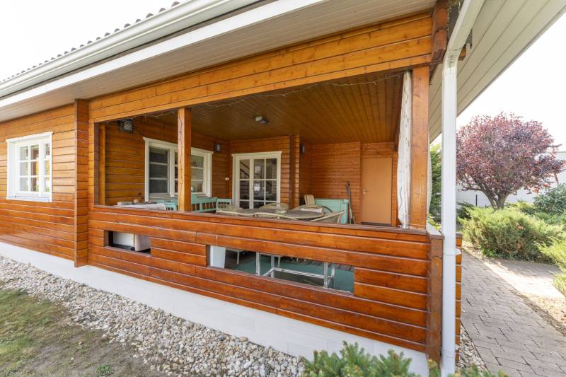 Eladó Siófok Sóstó városrészében, a Balaton parttól (és a szabadstrandtól)  kb. 400 méterre egy kiváló állapotú, roppant hangulatos gerendaház.A ház a prémium minőségi szintet képviselő német Fjorborg cég technológiájával készült 2010-ben. Minden felhasznált anyag és a kivitelezés is igényes, kiváló minőségű.A fűtésről hőszivattyú, a hűtésről split klímák gondoskodnak, az üzemeltetési költségeket pedig tovább optimalizálja egy gyönyörű cserépkályha és egy 5 kW-os napelemrendszer is.A nagyobbik fürdőszobában helyett kapott egy finn szauna.Az emeleti galéria jelen állapotában is többféle hasznosításra is alkalmas, de igény esetén akár két további szoba is könnyedén kialakítható.A kertet gyönyörű és egészséges növények sokfélesége színesíti. A sok-sok zöld mellett / között egy épített grill tűzhely, egy kerti faházikó, valamint fedett és nyitott autóbeállók is kiépítésre kerültek, a telket pedig gondozásmentes kerítés öleli körbe.Az ingatlan akár nagyobb családok lakhatására, akár üzletszerű üzemeltetésre is kiválóan alkalmas, jelenleg is minősített szálláshelyként hasznosítják.1/1 tulajdon, per- és tehermentes, nagyon rövid határidővel birtokba vehető.Időpontért, további információkért keressen akár hétvégén is.Egyedi igényekre szabott lakáshitelekkel állunk rendelkezésére. Bankfüggetlen hitelcentrumunk az országban elérhető összes bank és hitelintézet ajánlatát versenyezteti az Ön számára díjmentesen. Munkatársaink nagy szakmai tapasztalattal várják Önt az előre egyeztetett időpontban akár a normál munkaidő után is.