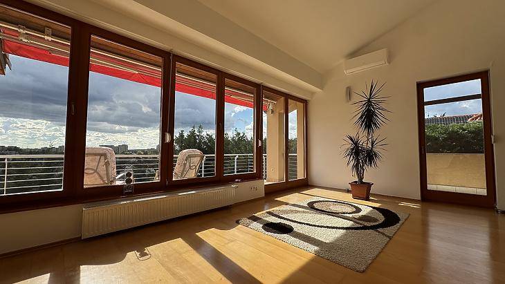 Eladása kínálunk egy újszerű, tágas, 142 nm-es, belső kétszintes lakást Sasadon. Az ingatlan egy kétlakásos, 2007-ben épült, 10 cm-es dryvittel szigetelt ház felső szintjén helyezkedik el. A 24 nm-es nappalin kívül a lakásban 3 hasonló méretű (14 nm) hálószoba található, illetve igény szerint a felső alaprajznál feltüntetett dolgozószobát át lehet alakítani egy teljes értékű 19 nm-es hálószobává. A nappalit, az előteret és a konyha/ étkezőt, középen a szinteket összekötő lépcső osztja meg, melynek aljába egy 2 nm-es kamra is kialakításra került. Az ingatlanban két fürdőszoba található. A nappaliból nyílik egy 15 nm-es délnyugati fekvésű, gyönyörű panorámával rendelkező, félig fedett, motoros árnyékolóval ellátott terasz, illetve szintúgy a nappaliból közelíthetjük meg az oldalsó, nyugati fekvésű 5 nm-es, teljesen fedett erkélyt. Központi kondenzációs kazán látja el fűtéssel és melegvízzel mindkét lakást, amelyek padlófűtéssel és külön-külön egyedi mérővel felszereltek. Található két légkondi is az ingatlanban. Az egyik az alsó szint nappalijában, amely 2024-ben lett felszerelve, a másik pedig a galéria hálószobájában, amely 2011 óta biztosítja az optimális hőmérsékletet. A déli fekvés miatt a lakás bővelkedik a napsütésben.A lakásban DSC riasztórendszer üzemel. Ezen kívül a piceszinten található a két beállásos garázs (36,5 nm), melyből az egyik beálló a lakáshoz megvásárlandó. Ára 10 M Ft. Ezt a ház mellett futó, fűthető lehajtóról lehet elérni autóval. Található még lent egy saját 23 nm-es tároló/ garzonlakás, melynek ára 15 M Ft. Ez jelenleg egy lakható kislakásként üzemel, ugyanis egy 4 nm-es fürdőszoba is kialakításra került benne. Külön megközelíthető, így a jövőben ennek a kiadása is opció lehet. Illetve a gépészeti helység és a grillterasz pedig közös használatú. A 300 nm-es hátsó kert közös. A dús növényzetű kertet automata öntözőrendszer locsolja, amelyet egy 15m3-es esővízgyűjtő is táplál. Itt még kialakításra került egy fészer is, amely a kerti eszközök tárolására alkalmas. Az elektromos hálózat szintenként (lakásonként) külön mérőórával van ellátva, a garázsszinten a teljes gépészethez és a teljes szint áramigényéhez napelem biztosítja az energiát.Világos, ablakos lépcsőház köti össze a ház három szintjét, amelynek középső szintjén van a bejárat és innen nyílik a földszinti lakás. Az első emeletről az emeleti lakás, a legalsó szintről pedig a kazánház és a közlekedő folyosó érhető el.Közlekedés szempontjából a nem messze található Sasadi utat érdemes használni, ahol az 53-as jelzésű autóbusszal 5 perc alatt elérhetjük a Kelenföldi vasútállomást. Ezen kívül a közelben a 8E, 108E, 139 buszok, illetve az 59-es villamos.A közelben található: iskola, óvoda, bolt, pékség, gyógyszertár, kozmetika, cukrászda. További kérdés esetén vagy időpont egyeztetés céljából, keressen minket bizalommal.Az ingatlan banki finanszírozással is megvásárolható, kérje ingyenes konzultációnkat.Vevőink részére a közvetítés díjmentes!