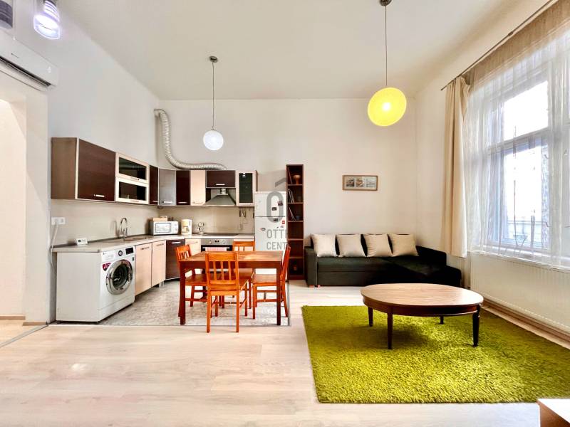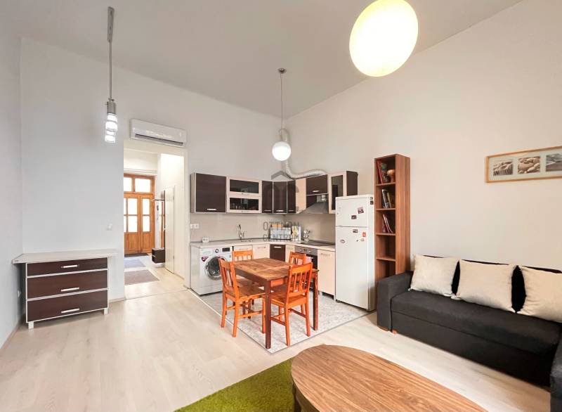 A 60 m²-es lakás elosztása ideális: két hálószoba, egy amerikai konyhás nappali, tágas előtér és fürdőszoba ideális teret nyújt a mindennapi élethez. A nagyobbik hálószoba különlegessége egy 6 m²-es galéria, amely extra élettérként használható, de praktikus tárolóként is tökéletes megoldás.A lakás teljesen bútorozott és gépesített: elektromos tűzhely és sütő, valamint teljesen felszerelt konyha. A téli melegről gáz-cirkó gondoskodik, míg a hűtő-fűtő klíma egész évben extra komfortot nyújt.A társasházról: rendezett, felújított társasház, a felújítás során lifttel lett felszerelve. Azonnal költözhető, így akár rövid időn belül új otthonává válhat.A lokáció kiemelkedő: a belvárosban található, sétatávolságra több főbb közlekedési eszköztől – az M1 és M3 metróvonal, valamint a 4-6-os villamos és számos buszjárat gyorsan elérhető. Emellett bevásárlási lehetőségek is könnyen hozzáférhetők.Amennyiben egy stílusos, azonnal használható, belvárosi lakást keres, ez az ingatlan tökéletes választás.