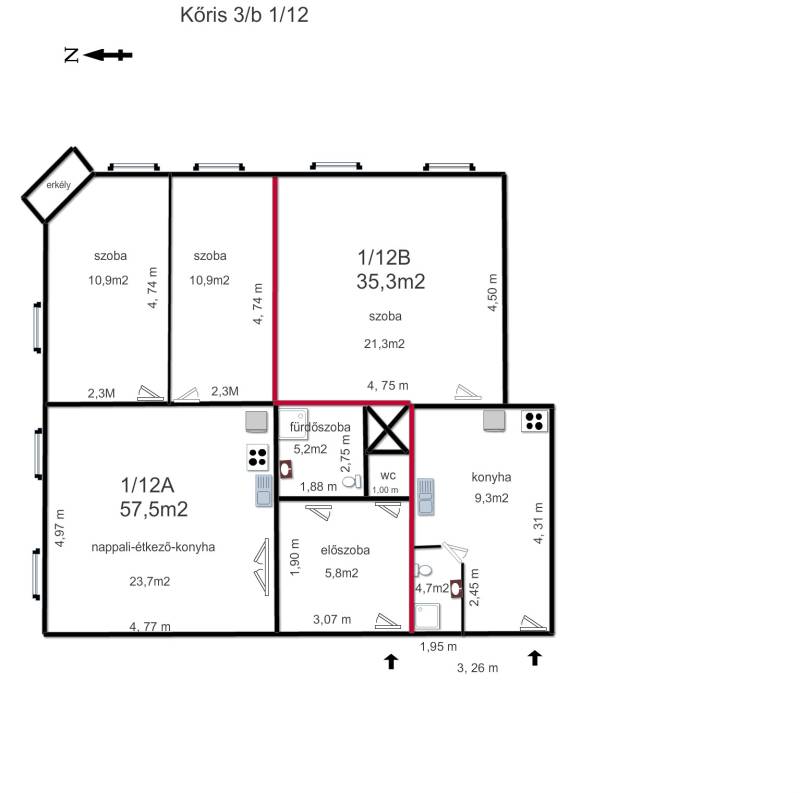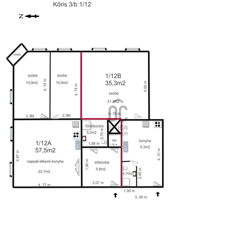 Erkély mérete: | 2 m2 |