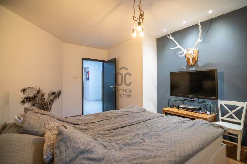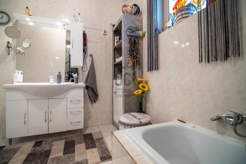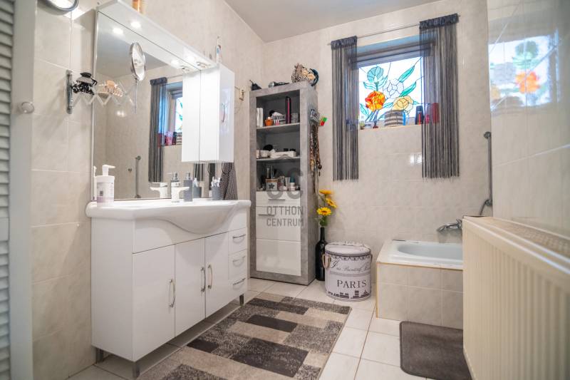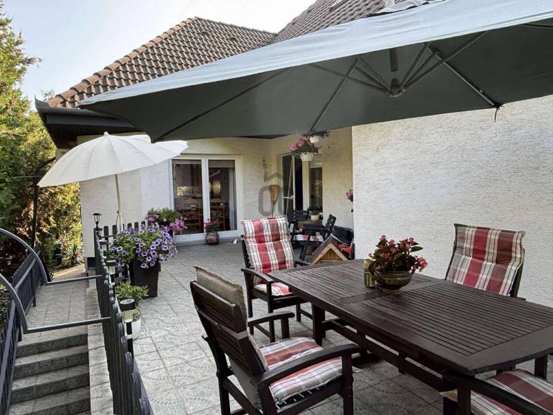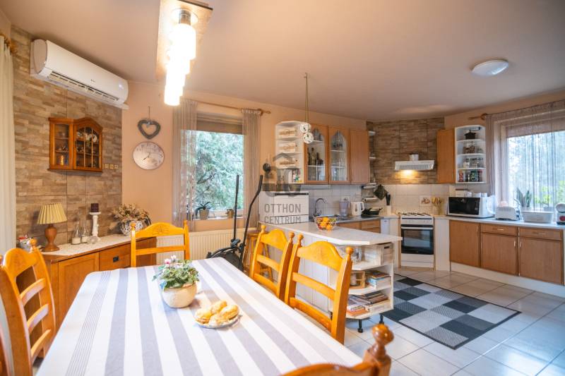 Sóskút Rózsadombján, zsákutcában eladó ez az otthonos, tágas családi ház, amely tökéletes választás lesz Ön és családja számára, ha egy nyugodt, csendes környezetben, Budapesthez közel keres önálló házat!A Pest vármegyei Sóskúton található ingatlan 292 négyzetméternyi élettérrel, 3 szinten (szuterén-földszint-emelet) és 642 négyzetméteres telekkel várja új lakóit!A HÁZRÓL:A házban összesen hét szoba található, így bőven van hely a gyerekeknek, esetleg több generációnak is együtt élni, de akár egy otthoni iroda vagy szalon megvalósítására is van lehetőség.A szuterén szint 5 évvel ezelőtt nyerte el jelenlegi állapotát, ahol egy előszoba, nappali-konyha-étkező, kamra, fürdőszoba-wc, mosókonyha, hálószoba-gardróbbal került kialakításra és amit modern, nagy terek ugyanakkor meghitt hangulat jellemez. A ház többi részére is igaz az átgondoltság és igényesség, amit tágas belső terekkel, világos nagy ablakokkal alakítottak ki, ezáltal barátságos, kellemes légkör fogad minket a házban.A földszinten előszoba, nappali, fürdőszoba, mosókonyha, gardrób, hálószoba, konyha-étkező és egy kamra kapott helyet.Az emeleti szinten pedig 3 szoba - melyből az egyik süllyesztett, lépcsővel kialakított helyiség - egy fürdőszoba és gardrób is található.Bár a ház a 90-es években készült el, de egyedi tervezésnek köszönhetően nem a tipikus akkori kornak megfelelő stílusjegyekkel rendelkezik, hanem annál jóval modernebb kialakítása jellemző. A házat 40cm-es porotherm téglából építették, melyen nemes vakolat található - sóskúti kőporral keverve, ami hozzájárul a ház szigeteléséhez.A tetőt Bramac, magas minőségű cseréppel fedték le. A nagy ablakok világos teret biztosítanak, melyek a szuterén szinten fa és műanyag nyílászárókkal, a többi szinten fa nyílászárókkal rendelkeznek. A 20 négyzetméteres intim terasz és zárt kert ideális helyszín a nyári sütögetésekhez, vagy egy csendes reggeli kávézáshoz, miközben a szép, zöld kertet csodálhatjuk.A telek mérete lehetővé teszi, hogy a gyerekek szabadon játszhassanak, és még egy kerti tároló is helyet kapott a praktikus tárolás érdekében. A ház melletti fedett garázs (aknával) egy autó számára ad parkolási lehetőséget. Ezenkívül az utcán, a ház előtt is meg lehet állni.FŰTÉS:A ház fűtéséről gáz-cirkó rendszer gondoskodik, illetve a földszinti nappaliban lévő kandalló is kellemes meleget és hangulatot biztosít.2 évvel ezelőtt nagy teljesítményű hűtő-fűtő klíma került beszerelésre több helyiségben is, így ezek is hozzájárulnak az ideális hőmérséklethez télen-nyáron.SÓSKÚT:Sóskút csendes és idilli környezete megfelelő választás a családosok számára. A település biztonságos, rendezett. A közelben több kirándulási lehetőség is megtalálható. A háztól kb 5 percre már a természetben sétálhatunk. A faluban két élelmiszerbolt, zöldséges, virágos, gyógyszertár, Posta, két dohánybolt és három étterem is rendelkezésre áll. Sportolási lehetőségként több lovarda és teniszpálya működik. Sóskúton üzemel még bölcsőde, óvoda és általános iskola is. Középiskolák pedig Érden vagy Budapesten néhány kilométeres távolságra érhetőek el.KÖZLEKEDÉS:Sóskútról könnyedén feljuthatunk az M7-es autópályára, ahonnan Budapest és a Velencei-tó is 20 perces autóútra található. A közeli tömegközlekedési lehetőségek által Volánbusszal az Etele tér - Érd - Sóskút - Pusztazámor vagy Etele tér - Sóskút (M7-esen) vonalon közlekedhetünk.A jelenlegi tulajdonosok hosszú éveken át szépitgették, óvták és otthonossá tették házukat, melyet kihasználatlanság miatt szeretnének most eladni! Nézze meg a hirdetéshez tartozó videót is , és ha tetszett az ingatlan, akkor jöjjön el és tapasztalja meg Ön is a fent leírtakat!