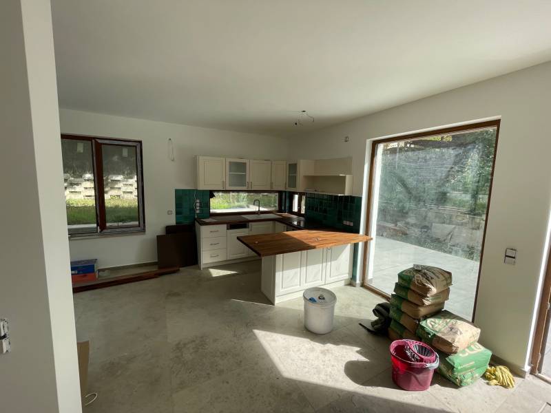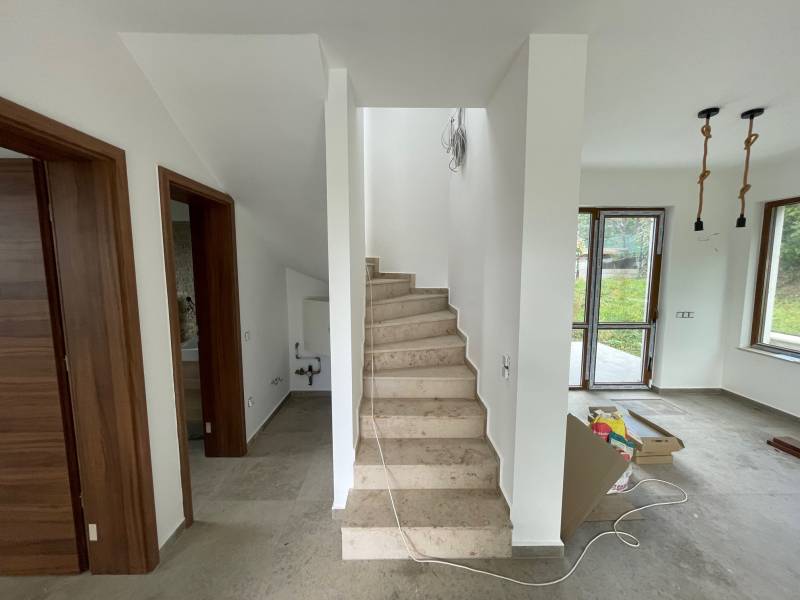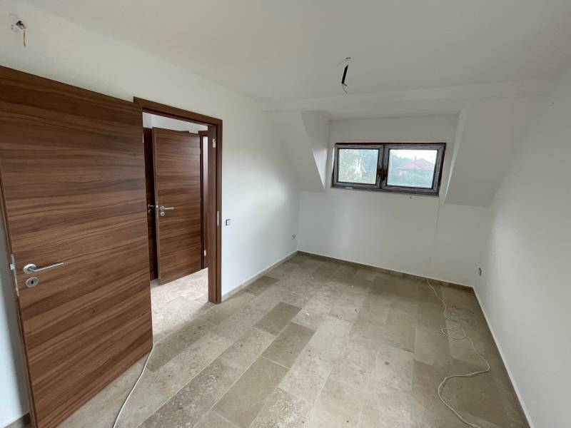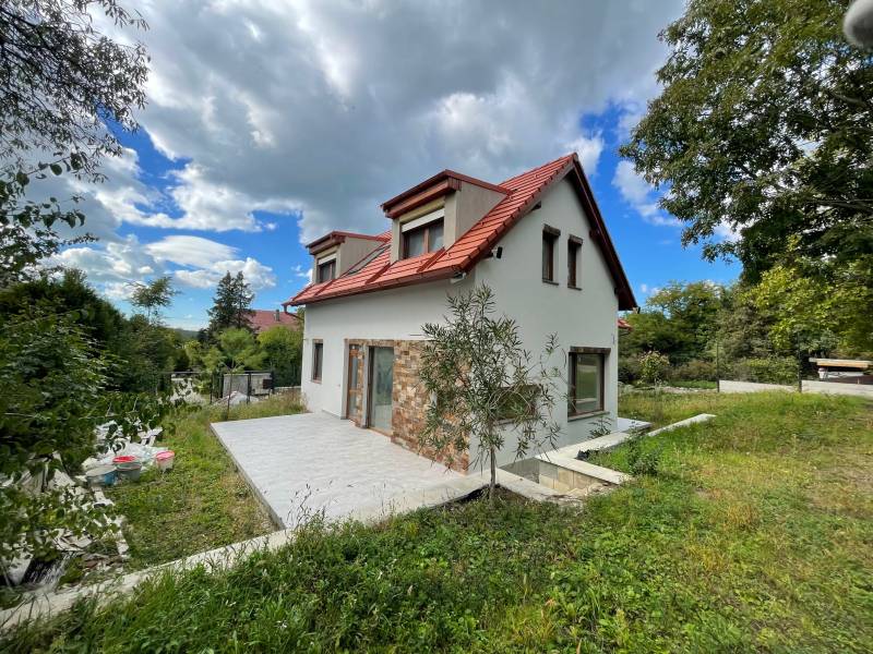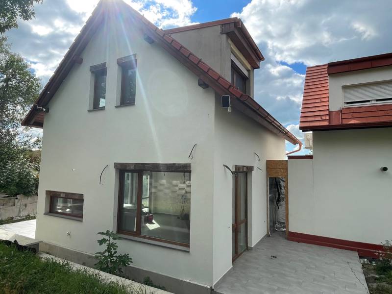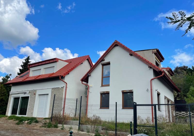 TIHANYBAN ÚJ ÉPÍTÉSŰ IKERHÁZFÉL - NYARALÓ ELADÓTihany Gödrös település részén kínáljuk eladásra ezt az új építésű, 104 m2 alapterületű, belső két szintes ikerházat, 250 m2-es saját használatú kertrésszel és autóbeállóval, amely a 100 m2-es közös területen kerül kialakításra.A 720 m2-es teljes telek területen két, egymástól jól elkülönített ház áll, amelynek nincs közös fala, a két épületet egy kis tárolóhelyiség köti össze. A két épület 6,00 x 8,96 m befoglaló alapterületű, egymástól tartószerkezetileg független, földszintes+ tetőteres, magas tetős, kétegységes üdülőépület, amely két család számára megfelelő térkapcsolatokkal rendelkezik. Helyiségei: a földszinten amerikai konyhás nappali, melyhez egy 21 m2-es és egy 12 m2-es terasz kapcsolódik, egy hálószoba, egy zuhanyzós fürdőszoba + WC, az emeleten pedig 1+2 hálószoba, háztartási helyiség és egy WC található.Az emeleti ablakból a Balaton víztükre is megcsillan a távolban.A jelenlegi készültség lehetővé teszi új tulajdonosa számára, hogy rövid időn belül használatba tudja venni az ingatlant. Műszaki tartalom: - fűtése: elektromos padlófűtés, a melegvíz ellátást elektromos bojler biztosítja - falazat: Porotherm Klíma 30 cm vtg. égetett kerámia N+F téglafalazat (monolit vasbeton lemezfödém) - tetőszerkezet: 42 fokos fa szerkezetű nyeregtető, Creaton Domino kerámia tetőcserép fedéssel -nyílászárók: műanyag szerkezetű, fa erezetes, barna színű homlokzati nyílászárók kerülnek beépítésre, 3 rétegű hőszigetelő üvegezéssel - klíma kiállások és a napelem előkészítése az új tulajdonos rendelkezésére állElhelyezkedése: a gödrösi szabadstrand 1 km-re, rövid sétával elérhető, buszmegálló 1,3 km, faluközpont, Apátság 1,8 km távolságra.Tihany Magyarország egyik legszebb fekvésű települése, látványos táji és természeti adottságokban bővelkedő község a Balatonba nyúló Tihanyi-félszigeten. Nemcsak a táj szépsége, de a falu varázslatos hangulata és történelmi emlékei is vonzóvá teszik Tihanyt a turisták számára. Építész- és ingatlanközvetítő irodánk minden hiteles szakmai segítséget meg tud adni, mellyel segíteni tudjuk döntését.Kérje az ingatlan részletes tájékoztató anyagát!Kövesse Balatoniingatlanguru facebook és balatoni_ingatlanguru instagram oldalunkat.Balatoni ingatlanguru – több mint közvetítő
