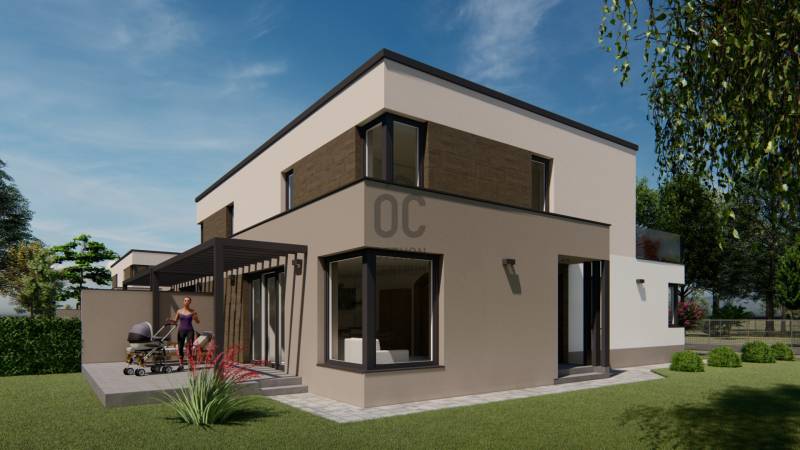 Képzeljen el egy otthont, ahol a modern építészet és a természet harmóniája találkozik. Debrecen-Józsa legújabb lakóparkja különlegessége, hogy a terület korábban botanikus kertként működött, ennek varázslatos hangulata ma is átjárja a környéket. A gazdag növényzet és a gondosan parkosított környezet biztosítja a természet közelségét és a mindennapok nyugalmát.A lakópark csendes utcáiban a gyerekek biztonságosan játszhatnak, biciklizhetnek, miközben a család a zöld környezet nyugalmát élvezheti.Alapterület: 177 m²Lakótér: 108 m²Szintek: földszint + emeletSzobák száma: 4 + nappaliGarázs: 1 autós, közvetlen belső kapcsolattalTelekrész: saját használatú 450 nmElrendezésA modern, lapostetős ikerház átgondolt alaprajzzal rendelkezik:Földszint: világos nappali étkező-konyhával és kamrával, egy hálószoba, fürdőszoba, külön WC, háztartási helyiség, előszoba, egygépkocsis garázs, valamint 22,4 m²-es terasz.Emelet: három hálószoba, két fürdőszoba, közlekedő, és 23,3 m²-es erkély.Műszaki tartalom (kiemelt jellemzők)Szerkezet: Porotherm 30 N+F tégla, 15–20 cm hőszigetelésselTetőszerkezet: lapostető, egyenes rétegrenddel, kavicsolt felülettelNyílászárók: 6 légkamrás, 3 rétegű üvegezéssel (Uw=0,9 W/m²K), kívül antracit, belül fehérÁrnyékolás: motoros redőny előkészítésGarázskapu: motoros, hőszigetelt szekcionált kapu, 2 távirányítóvalBurkolatok: laminált padló 7.500 Ft/m²-ig, kerámia 10.000 Ft/m²-ig választhatóFürdőszoba felszereltség: Hansgrohe csaptelepek, Wellis szaniterek, Macryl Eco kád, Ravak zuhanyfalFűtés-hűtés: levegő-víz hőszivattyú, padlófűtés + mennyezethűtés, nappaliban klímaSzellőzés: hővisszanyerős szellőztető rendszerBiztonság: komplett riasztórendszer előkészítveExtrákKörbekerített lakópark, úszókapuval, kizárólag lakók részéreBiztonságos magánutca, ahol a gyerekek felszabadultan játszhatnakTágas terasz és erkély, ideális családi és baráti összejövetelekhezÚj építésű, energiatakarékos otthon modern gépészettelEgyedülálló zöld környezet a volt botanikus kert helyénHa Ön is egy modern, energiatakarékos otthonra vágyik a természet ölelésében, biztonságos, családbarát környezetben, ne habozzon!Hívjon most, és biztosítsa be helyét a Green Living Lakópark különleges otthonai között._ MAGASTETŐS KIVITELBEN IS VÁLASZTHATÓ: 186.970 HUF. _