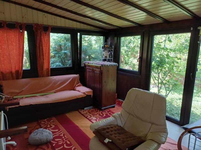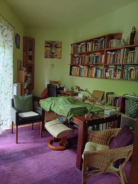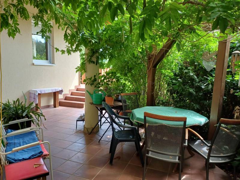 Csodálatos kert, egyedi stílus a Pilis szívében!Eladó Pilisvörösvártól nem messze, Piliscsaba Garancsligeti részén, nyugodt környezetben található egy 1119 m²-es, gyönyörű kerttel rendelkező, kétszintes családi ház.Az ingatlan 2008-ban épült, 38-as téglafalazattal és külső, 15 cm vastag hőszigeteléssel.Belső kialakítása egyedi:-felső szinten (95 nm): előtér, 3 szoba, fürdőszoba, WC, gardrób rész, egy kis szintkülönbséggel tágas nappali+konyha+étkező teraszkapcsolattal és egy télikerttel, lépcsőlejáró az alsó szintre-szuterénszinten: fűthető garázs, szauna zuhanyzóval, mosdóval, fedett kocsibeálló.A fűtés gázkazánnal működik, hidegburkolatos részeken padlófűtéssel.Az utcafronti- és garázskapu elektromos.Az egész telek telis-tele van gyönyörű növényekkel (gyertyán, galagonya, ringló, tiszafa, hársfa, ginkgo, füge, cseresznye-, meggyfa, vérszilva, színes virágok, stb. :)). Még gyógynövényes rész is helyett kapott a kertben. Hangulatos kis kiülős részek vannak az érett növényzet között. :)Ez a ház és kert egy igazi csoda, ha szereti a különleges hangulatot! :)Budapest kb. 40 perc vonattal.A közelben számos kirándulási lehetőség.Ha további kérdése lenne vagy megtekintené az ingatlant, kérem hívjon!Őri Klaudia 20/253-2522