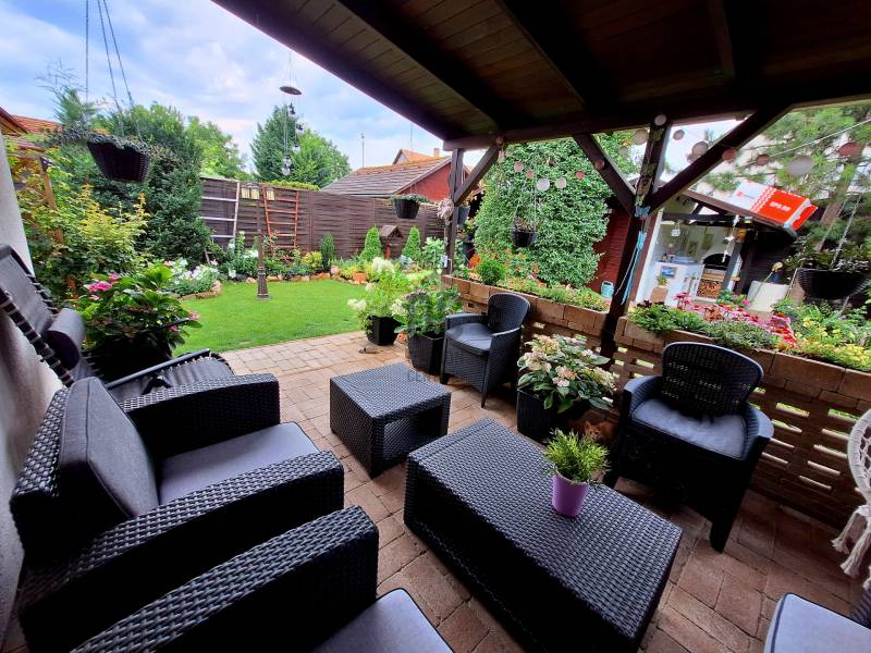 Otthon, ahol minden évszak mesél – HalásztelekenHalásztelek egyik legkedveltebb, csendes utcájában kínálok megvételre egy különleges hangulatú, 2008-ban épült, 2025-ben teljes-körűen megújult családi házat, amely minden részletében a harmóniát és a gondoskodást tükrözi.A téglaépítésű, hőszigetelt ház korszerű műanyag nyílászárókkal rendelkezik, szúnyoghálóval és redőnyökkel minden ablakon, a tetőt zsindely borítja. A fűtésről turbó gázcirkó gondoskodik, termosztáttal szabályozható, emellett egy 5 kW-os klíma is segíti a kényelmet az év minden időszakában.A tágas nappali és három hálószoba ideális elrendezést kínál akár nagyobb család számára is. A ház szíve mégis a gondosan parkosított kert, amely minden évszakban más arcát mutatja: tavasszal virágillat, nyáron buja zöld, ősszel aranyló levelek, télen pedig csendes meghittség uralkodik benne.A 15 m²-es fedett terasz a reggeli kávé vagy az esti borozgatások kedvenc helye lehet, míg a hangulatos nyári konyha, a beépített öntözőrendszer, valamint a két különálló, fából készült kerti tároló teszik teljessé a kert élményét. A teljesen zárt udvar elektromos kapun keresztül közelíthető meg, a szomszédság rendezett és kifejezetten csendes.Ez a ház nem csupán egy ingatlan – igazi otthon, ahol minden részlet átgondolt, szeretettel kialakított, és amely új tulajdonosát is ugyanazzal a békével és meghittséggel várja, ahogyan eddig a jelenlegi tulajdonosokat szolgálta.Ha Ön is olyan helyet keres, ahol a minőség, a természet közelsége és a nyugalom találkozik, ezt a halászteleki házat érdemes személyesen is megismernie.