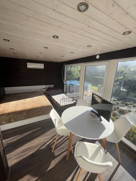 Badacsonytomaj-Badacsonyörs belterületi részén vált eladóvá ez az autentikus jegyekkel bíró, lakóházként bejegyzett ingatlan plusz telekkel, mely valamikor az 1950-es években épült és a folyamatos karbantartásnak valamint felújításoknak köszönhetően megőrizte eredeti jellegét és hangulatát is!A 3323 nm-es telek közművesített, víz, villany és csatorna is bevezetésre került, gáz az utcában található.A ház fűtéséről és hűtéséről hőszivattyús rendszer gondoskodik, a fűtést egy fatüzelésű kis kályha is kiegészíti.A ház hasznos alapterülete 65 négyzetméter, elosztását tekintve egy konyha-étkező, folyosó, 3 szoba, fürdőszoba - wc, valamint háztartási helyiség került kialakításra az épületben.A kert hátsó részében található egy hangulatos kerti tó, amit egy vörös levelű japán juharfa tesz teljessé. A telek végében egy 40 négyzetméteres alapterülettel rendelkező szaunaház került kialakításra, benne 8 személyes finn szauna, 9 kw-os kályhával, a falon egy parajdi sóképpel, zuhannyal, külső pihenővel, ahonnan a kilátás a Badacsonyra néz.A telek részén, egy modern, 30 négyzetméteres hűthető-fűthető mobilház található rajta, amely kis nyaralónak is tökéletes választás, emellett pedig helyet kapott még egy 6 személyes lakókocsi és egy régebbi, tárolóként funkcionáló, tégla épület is a telken belül, valamint egy fedett kiülő/ terasz.A kert szemet gyönyörködtető, az épület előtt kiépített teraszon helyett kapott egy jakuzzi, társalgásra alkalmas kiülő rész és sütögető helyiség.Elhelyezkedéséből adódóan a telek egésze tájpanorámás a környező tanúhegyekre. Ajánlom az ingatlant mindazok figyelmébe, akik a mindennapi nyüzsgésből kiszakadva a megérdemelt pihenést nyugodt környezetben szeretnék eltölteni távol a város zajától!Kérdés esetén, keressen bizalommal az elérhetőségek egyikén.