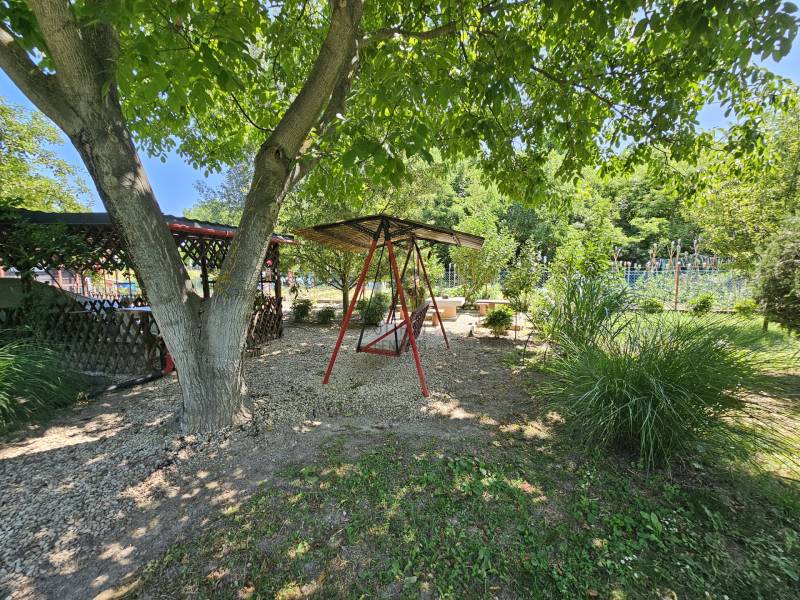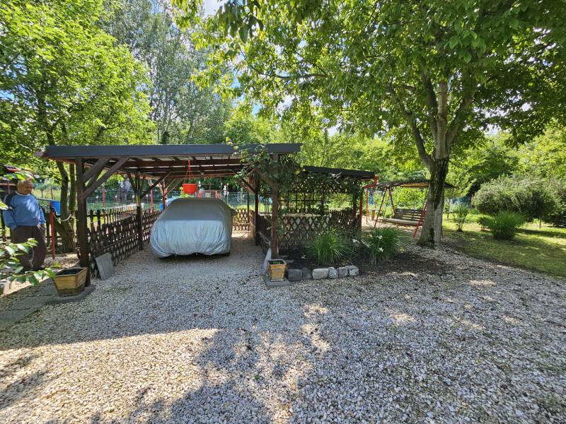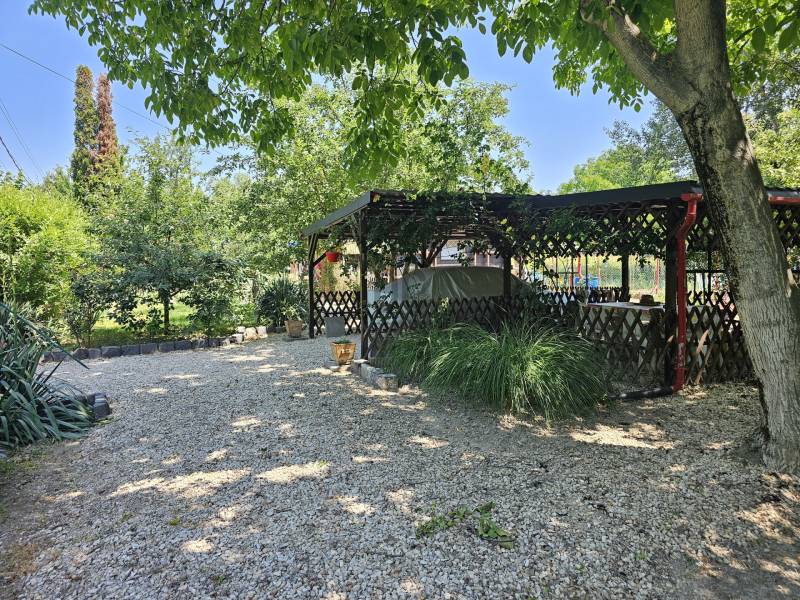 Képzeld el a napod így:Reggel kinyitod a faház ajtaját, beleszippantasz a friss levegőbe, és leülsz a kertbe a kávéddal. Körülötted gyümölcsfák, a madarak csicseregnek, te meg azon gondolkodsz, hogy inkább barackot vagy szilvát kapj le tízóraira. A ház maga egy 44 m²-es, kétszobás, tárolós kis kuckó, ami pont annyi, amennyit rendben lehet tartani anélkül, hogy rámenne a hétvégéd. A telek viszont 1126 m², körbekerítve, szépen karbantartva – vagyis van hely a grillnek, függőágynak, de akár egy kisebb focimeccsnek is. A praktikum is pipa: fúrt kút, hogy a virágok ne szomjan haljanak, és egy fedett kocsibeálló, ahol az autó árnyékban pihenhet, miközben te a kertben napozol. Dél körül lesétálsz a Dunához, ami csak 500 méter, szóval tényleg tíz perc flip-flopban, törölközővel a válladon. Ott egy gyors csobbanás, majd vissza a házhoz, ahol akár hűs árnyékban szundizhatsz a fák alatt. Ha épp bevásárolni támad kedved vagy beülnél egy fagyira, a központ mindössze 10 perc séta – nincs autózás, nincs dugó, csak egy laza séta. Este pedig jöhet a haveri sütögetés a kertben, a csillagos ég alatt. És a legjobb rész? A kert karbantartásához minden felszerelés itt marad, benne van az árban. Magyarul beköltözöl, és már az első nap olyan a vibe, mintha mindig is itt nyaraltál volna.Szóval ha szeretnél egy saját kis nyugalomszigetet a Duna közelében, ahol minden adott a lazuláshoz, akkor ez a hely neked szól.Ez az ingatlan a \"Felező csomag\" megbízási portfólióhoz tartozik. Részletek az Otthon Centrum weboldalán.