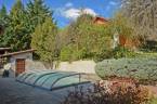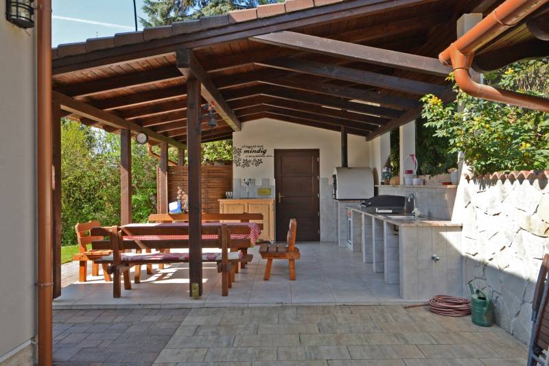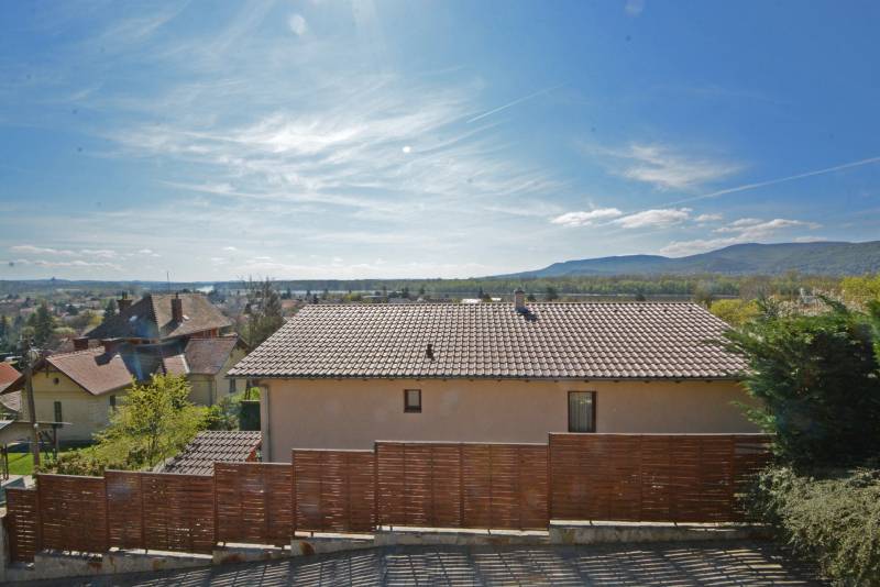 Alap adatok:- 1743 nm telekterület.- Két helyrajzi szám. ( 892+851 nm)- 2016-ban épült 3 szintes panorámás luxus családi ház, 4 lakószobával, panorámás nappalival,342 nm hasznos alapterülettel.- 60 nm-es panorámás terasz.- 4 autó részére garázs elektromos töltőfejekkel.- 6 autó részére gépkocsi beálló.- Fedett úszómedence, - 6 Kw szaldós napelem rendszer.- Hőszivattyús, elektromos, gáz és vegyes tüzelésű fűtés ki van alakítva és igény szerint kombinálható.- A világ legbarátságosabb full panorámás nyári konyhája tetővel, pultokkal raktárhelyiségekkel.- Elvehetetlen panoráma a Dunakanyarra- Egy 28 nm-es két szobás vendégház a másik helyrajzi számú telken.Verőce kis település a Duna bal partján 4160 lakossal. Budapest belvárosától a távolság 36 km légvonalban. 52 km közúton, mely gépkocsival kb. 1 óra. Vonattal Budapest Nyugati Pályaudvarról Verőce vasútállomásig Z70-es zónázó vonattal 31 perc.A telkek a település központjától 50 méterre, a vasútállomástól 200 méterre, a Duna partján lévő sétánytól 250 méterre, a kezdődő domboldalon helyezkednek el. Teraszos kialakítással különülnek el egymástól. Az alsó telek talajfeltöltésének köszönhetően mindkét ingatlan kertjéből örök panoráma nyílik a Dunakanyarra és a szemközti Pilis hegyvonulatára. Két telek, két helyrajzi szám, két utcai kapu, két külön közmű bekötés. Dologösszességben akarjuk értékesíteni a két telket.Az alsó telek 892 nm-es, a feltöltésnek köszönhető nagyrészt sík területekkel rendelkezik, rajta 3 szintes, szintenként 100 nm alapterületű családi házzal, melynek építését 2015 ben kezdték, a használatba vételi engedélyét 2019-ben adták ki. A földszinten a fűtött garázsfeljárón keresztül egy sík gépkocsibeálló mögött közel 60 nm -es, négy gépkocsi tárolására alkalmas garázs helyezkedik el, benne elektromos autók gyorstöltésére alkalmas fejegységgel. Mögötte 15 nm-es bortároló található. A földszinti folyosóról nyílik egy 10 nm-es helyiség, ahol a szauna előkészítés és egy zuhanyzó kap helyet. A szauna ezidáig nem került beépítésre, jelenleg raktárként funkcionál. A földszinten még egy különálló wc is ki lett a alakítva, ami az előszobából nyílik.Az első emeletre lépcsősor vezet, ahol egy 5.5 méteres belmagassággal rendelkező, hatalmas üvegablakokkal a Dunakanyarra panorámás nappali szoba található, ahonnan a szintén Dunai panorámás, közel 60 nm alapterületű teraszra juthatunk ki. A terasszal egy szintben van a gondozott pázsitos kert, ami egy támfallal különül el az alatta lévő telektől, a rajta lévő ház fölé emelve azt. A kertből szintén korlátlan a panoráma.A nappali szobából nyíló konyha és kamra a földszint és az első emeleti előkert közti rézsűs virágoskertre néző ablakokkal rendelkezik. Az első emeleti nappaliból nyílik az a háztartási helység, ahol a mosógépek és az épület gázcirkóval valamint hőszivattyúval kombinált fűtés és meleg víz rendszerének gépészete található.A nappaliból nyílik a szülői háló, melynek saját fürdőszobájában pezsgőfürdős kád, dupla mosdókagyló és wc kap helyet.Az első emeleti terasz és kert szintjén található az épület mellett jobb oldalt elterülő telekrész, ahol egy fedett kültéri konyha, és a hozzá tartozó 15 nm-es külső tároló kap helyet. Az oldalfalak nélküli konyhából elvehetetlen panoráma nyílik a Dunára és a környező hegyekre. A külső konyha hátsó oldalfalát a mellette lévő telek szinteltolását tartó támfal adja. A külső konyha tetőszerkezetén találhatóak az a napelem rendszer, mely a szaldós áram visszatáplálási rendszer gerincét alkotja. Az épület első emeletének szintjén a ház mögötti kertrészen van kialakítva az a csúsztatható boltíves polikarbonát tetővel ellátott kültéri medence, mely ellenáramoltatóval, fűtő berendezéssel és nagy teljesítményű vízforgató és homok alapú szűrőberendezéssel van ellátva. A medence melletti kültéri zuhanyzó alatt található a medence gépészeti egysége, míg a belépő vízrendszer központja a medence melletti tároló épületben helyezkedik el. A medence mellől indul az a széles lépcsősor, mely a fölötte lévő telekre vezet, mely ettől a szinttől egy támfallal különül el.A ház harmadik szintjén a nappalival egy légtérben, onnan a nappali ablakain keresztül a Dunakanyarra panorámás felső galéria kap helyet, ahonnan a harmadik szint három lakószobája érhető el. A ház jobb felében lévő két különálló szobához egy zuhanyzós fürdőszoba tartozik, míg a ház bal oldali részén lévő nagyobb hálószoba önálló zuhanyzós fürdőszobával rendelkezik.Az épület elektromos redőnyökkel szerelt. A fűtést és a meleg víz ellátást gáz cirkó és hőcserélős fűtőberendezés kombinált használatával lehet megoldani, mely lehetőséget biztosít arra, hogy az éves gázhasználatot a támogatott lakossági mennyiség alatt lehessen tartani. A szaldós napelem rendszernek köszönhetően elektromos gépjárművek töltése és a hőcserélős fűtési rendszer üzemeltetése mellett is a lakossági támogatott szint határértéke alatt tudják tartani a fogyasztást a jelenlegi tulajdonosok.A felső 851 nm-es, enyhén emelkedő telek. Rajta 28 nm alapterületű két hálószobás, zuhanyzós fürdőszobával, wc-vel és külső tárolóval ellátott vendégház áll, mely jelenleg irodaként funkcionál. Fűtése gáz konvektor és elektromos padlófűtés, de újonnan épült vegyes tüzelésű kémény már rendelkezésre áll, akár kályhának akár kandallónak. A telek ősfás, egyik részén gondozott, futtatott szőlőtőkékkel. Az alatta lévő telektől egy támfal választja el, melyben beép