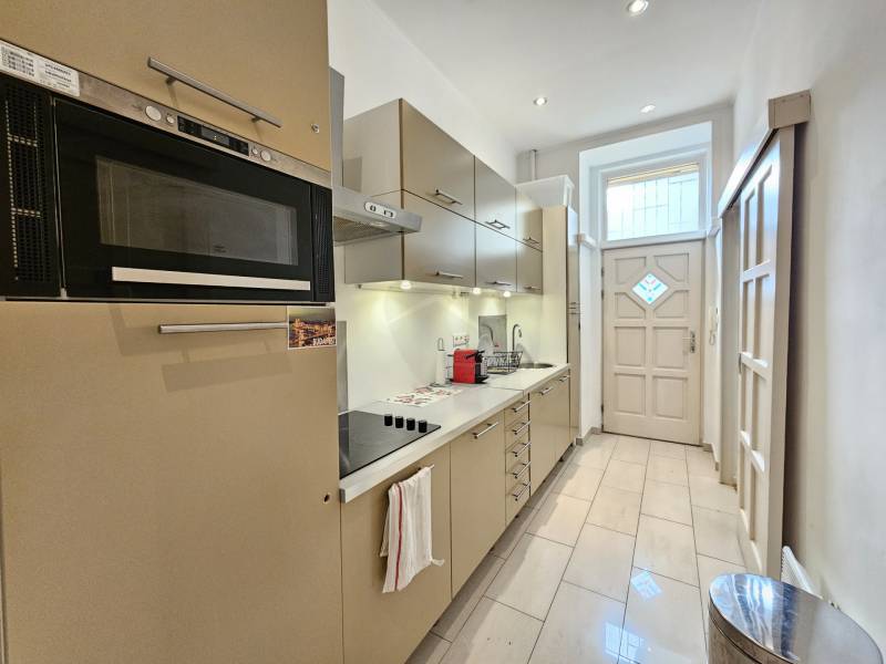 ELADÁSRA kínálunk egy 40 m² alapterületű, 1+1 szobás tégla építésű lakást Belső-Erzsébetváros szívében, a Holló utcában. Kiemelkedő LOKÁCIÓJA miatt egyedülálló BEFEKTETÉSI LEHETŐSÉG!A méltán híres Király utca a befektetők álma, hiszen ez a nagybetűs BELVÁROS. A Deák tértől néhány perc sétára, a turisták által sűrűn látogatott Gozsdu udvar szomszédságában található az ingatlan, ahonnan a belváros minden fő látványossága (pl. a Bazilika, a Dohány utcai Zsinagóga, a Váci utcai Fashion Street) és számtalan szórakozási lehetőség karnyújtásnyira van. A kiváló közlekedés (M3-as és M1-es metró, számos villamos és autóbuszjárat) már csak hab a tortán!A lakás az első emeleten található, lift nincs az épületben.Az ingatlanba belépve a világos előtérbe érkezünk, tőlünk balra találjuk a hálószobát, előttünk pedig a konyha kapott helyet. Tovább haladva bal oldalt nyílik az igényesen felújított fürdő, beépített szagelszívóval, egyenesen pedig a tágas nappali. Itt igényesen kialakított álmennyezetbe épített világítás és délnyugati fekvésű modern műanyag ablakok biztosítják mindenkor a fényt a térben. Praktikus alaprajza miatt akár kedv szerint alakítható. Az eredeti 3.8 méteres belmagasság lehetőséget biztosít galéria kialakítására is a nagyobb helyigényű tulajdonos számára.Az ingatlanban klímaberendezés, illetve (minden helyiségben) elektromos fűtőpanel biztosítja a megfelelő hőmérsékletet lakói számára. A lakáshoz tartozik Airbnb engedély, mely tovább szélesíti a befektetési lehetőségek palettáját.A közös költség havi 17.600 Forint, mely tartalmazza a vízfogyasztást. A lakásban található bútorok megállapodás szerint a vételár részét képezik, igény szerint a tulajdonos vállalja elszállíttatásukat.Az ingatlan tehermentes, 1/1 arányú tulajdonossal, azonnal birtokba vehető.Ha az ingatlan felkeltette érdeklődését keressen bizalommal, szívesen mutatom!!!