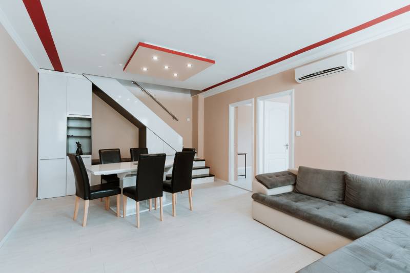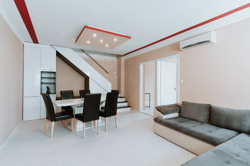 Eladó egy tágas, 5 szobás ingatlan Aszód központjában, amely ideális választás nagycsaládosok számára. Ez a belső kétszintes lakás a város centrumában, mégis egy csendes mellékutcában található, így biztosítva a nyugodt lakókörnyezetet.Az ingatlan jellemzői: 2008-ban épült téglából a társasház. A lakás az első emeleten található, hátsó udvarra néz, ezáltal rendkívül CSENDES. Külső drvit szigeteléssel ellátott, ezáltal alacsony rezsivel rendelkezik.Tágas Elrendezés: A 5 szoba bőséges helyet biztosít minden családtag számára.Két Kényelmes Fürdőszoba: Egyik fürdőszoba káddal, a másik zuhanyzóval felszerelt, így minden igényt kielégít.Kiváló Állapot: Az ingatlan azonnal költözhető, nincs szükség felújításra vagy karbantartásra.Modern Kényelem: Mindkét szinten légkondicionáló biztosítja a kellemes hőmérsékletet az év minden szakaszában.Prémium Kivitelezés: Magas minőségű burkolatok és konyhabútorok emelik az otthon színvonalát.Teljes Berendezés: A vételár tartalmazza a teljes berendezést, így Önnek csak be kell költöznie.Parkolás: Két felszíni beálló is benne van az árban, így az autóparkolás is kényelmesen megoldott.Ez az ingatlan tökéletes választás azoknak, akik egy tágas, kényelmes és modern otthonra vágynak Aszód központjában. Ne hagyja ki ezt a remek lehetőséget, és tekintse meg személyesen!Keressen minket még ma, és találja meg álmai otthonát!