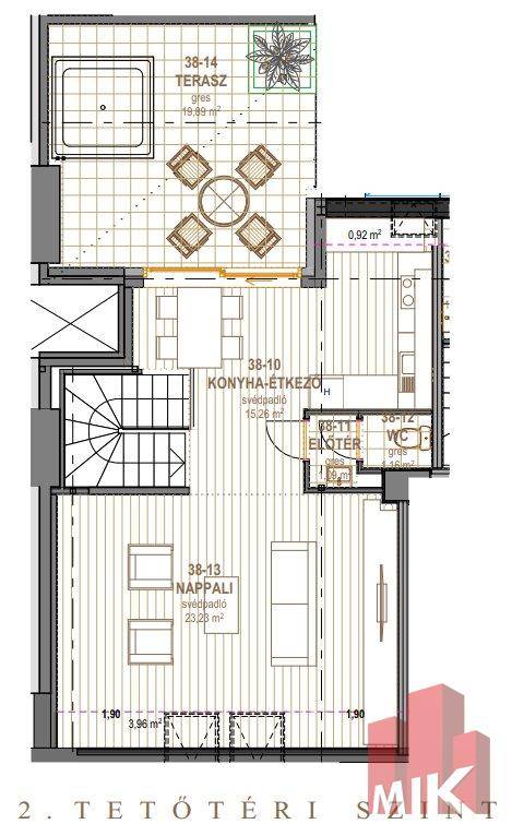 A belváros egyik legimpozánsabb épületének vadonatúj tetőterében, a Jókai tér és az Andrássy út szomszédságában kínálunk egy 127 nm-es, luxuslakást.Exkluzív környezetben, műszakilag és esztétikailag a jelenkor elvárásainak megfelelően megtervezett és kivitelezett 127 m2 alapterületű, nappali-konyha-három hálószoba beosztású lakás 22,58 m2 terasszal eladó. A lakás Petschacher Gusztáv tervei alapján készült, és az épület 5. emeletén helyezkedik el, kétszintes, ablakai az utcára néznek. Kedvező beosztású, az alsó szinten három szoba vizesblokkokkal, a felső szinten konyha, nappali és tetőterasz található. Az alsó szinten, az előtérből és közlekedőből nyílnak az egymástól jól szeparált, közel azonos méretű szobák. A felső emeleten található a nappali és a konyha, egy vizesblokk itt is kialakításra került. A nagyméretű teraszra lehetőség van jacuzzi elhelyezésére.A lakás hűtéséről és fűtéséről oldalfali fan-coil rendszer gondoskodik. Riasztórendszer kiépítésre kerül. A hidegburkolatok (konyha, fürdőszoba, közlekedők) alatt padlófűtés kerül elhelyezésre. A lakások hűtését és fűtését H tarifás hőszivattyús rendszer biztosítja, így a lakások energiaellátásának költsége nagyon kedvező. A burkolatok színe tetszés szerint választható, a kijelölt opciók közül. Megfelelő időben történt megrendelői módosításokra lehetőség van.A hirdetésben megjelenő képek csak látványtervek!Lakásaink a szerződés aláírását és az egyedi igények véglegesítését követően mindössze 60 napon belül költözhetőek.Érdeklődése esetén állunk rendelkezésére! Az ingatlan személyes megtekintése előtt bővebb felvilágosítást adunk, az ingatlan megtekintését kérésére megszervezzük.MIK azonosító: 3839773