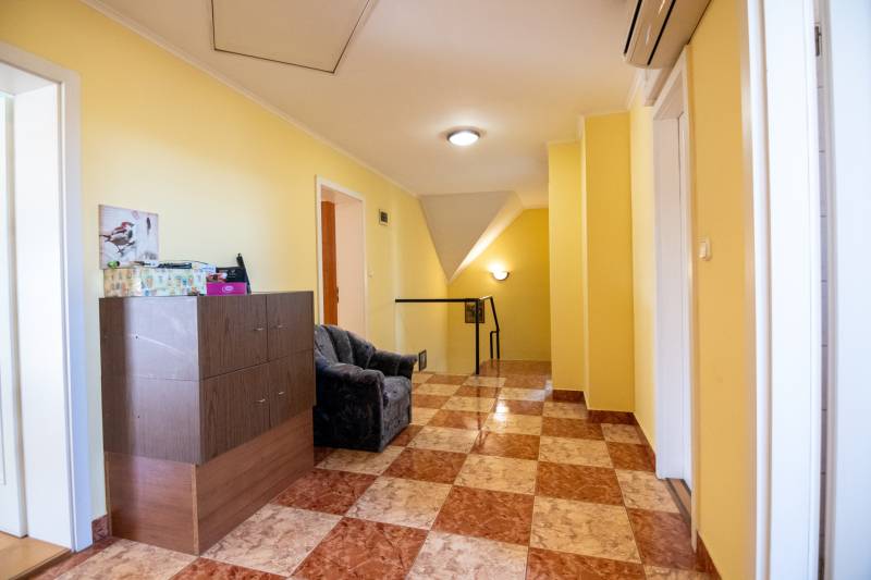 ElhelyezkedésPest vármegye szívében, Pécelen kínálunk eladásra egy 441 m²-es, kiváló állapotú családi házat.A környék csendes, rendezett és kedvelt, ideális választás mindazoknak, akik nyugodt, mégis Budapesthez közeli otthont keresnek. Az ingatlan jellemzőiTelek területe: 1.287 m²Lakóterület: 441 m²Szobák száma: 6Fürdőszobák száma: 3Fűtés: gáz cirkó + kandallóKlíma: beépített légkondicionálóParkolás: több autó számára, fedett garázs A ház bemutatásaAz ingatlan tágas, amerikai konyhás nappalival rendelkezik, amely modern és exkluzív hangulatot kölcsönöz a térnek.A világos, igényes belső terek a prémium minőségű kivitelezésnek köszönhetően otthonos, mégis elegáns életteret biztosítanak.Kényelmes megoldást nyújt a család minden tagjának, a nappaliban található impozáns kandalló pedig meghitt hangulatot teremt a téli estéken.Nyáron a házat körülölelő zöld kert természetes árnyékot és friss levegőt biztosít, a beépített klíma pedig gondoskodik a kellemes hőmérsékletről a legmelegebb napokon is. Külső és kertA kertkapcsolatos elrendezés és a rendezett, parkosított kert igazi oázist kínál a mindennapokban.A kertben fúrt kút is található.Grillező biztosítja a kinti sütögetés élményét.A telken belül több mellékhelyiség található, amelyek szerszámok, anyagok tárolására vagy műhely kialakítására is tökéletesek.A tágas garázs több személygépkocsi számára biztosít kényelmes parkolási lehetőséget.Illetve a fedett beálló még több kocsi számára. Hasznosíthatóság és lehetőségekEz az ingatlan nemcsak családi otthonnak, hanem akár vállalkozás céljára is kiváló lehetőség.Illetve 2 generáció számára is ideális választás lehet.Az 1.287 m²-es telek bővítési lehetőséget kínál, így a leendő tulajdonos saját igényeire szabhatja.Közlekedés és környékA környék kiváló ellátottsággal rendelkezik: iskolák, boltok, szolgáltatások mind elérhető távolságban találhatók.A jó közlekedési kapcsolatoknak köszönhetően Budapest gyorsan és egyszerűen megközelíthető – ideális választás ingázók számára is.A csendes utcák és a barátságos szomszédság biztonságos, családbarát környezetet teremtenek. Egyéb információkAz ingatlan tehermentesKiváló befektetési lehetőség ÉrdeklődésAmennyiben ez a különleges péceli ingatlan felkeltette érdeklődését,keressen bizalommal – nézze meg, és győződjön meg személyesen a ház egyedülálló értékeiről!
