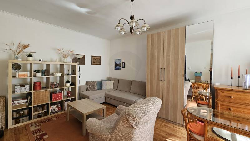 Eladásra kínálom ezt a csodás kertre néző, saját terasszal rendelkező egy szobás garzonlakást a méltán kedvelt VIOLA utcában. A lakás egy 2008-as építésű kiváló állapotú társasházban található, akadálymentesített.A lakásban nagy gardrób található, így a tárolás könnyen megoldható. A szoba kényelmes méretű, teraszkapcsolatos, konyhasarokkal beépített konyhagépekkel.Déli tájolásának köszönhetően napos, nagyon hangulatos. A fürdőben kád található, itt kapott helyet a wc is. Vízórás, így fogyasztás alapú elszámolás van, fűtése pedig házközponti. A lakás védett helyen található, így kimondottan gazdaságos fenntartású. Klímával felszerelt, ablakain redőny szabályozza a fény útját. Az ingatlan kiváló lokációval bír, kezdő lakásnak is tökéletes, vagy befektetésre is kiváló, mivel könnyen bérbeadható, az egyetemek közelsége és jellemzői miatt. Jöjjön el nézze meg személyesen!