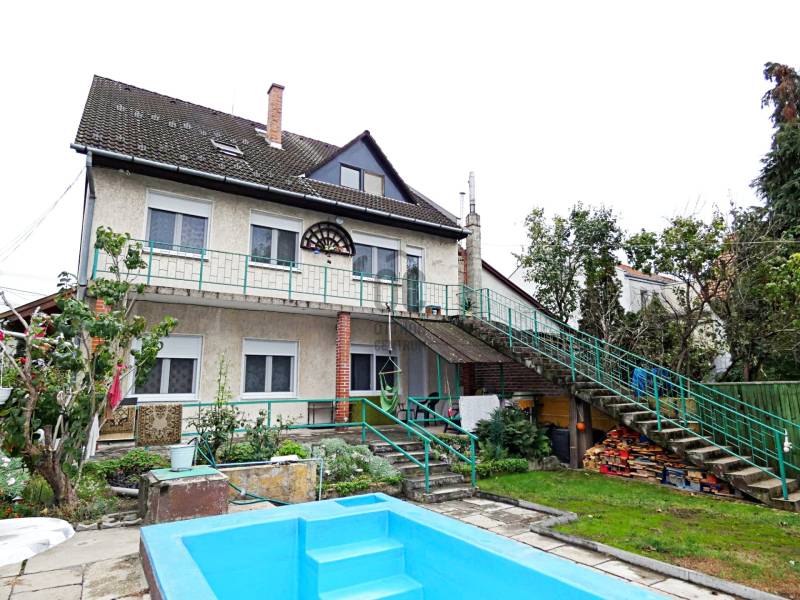 Befektetők (is) figyelem!Sok lehetőséget magába foglaló, átalakítható, újra gondolható. Kis hostel, munkásszállás vagy 2 generáció részére elszeparáltan használható. Érdemes rápillantani mert ….…. Budapest XV. kerületéből, Rákospalotáról hoztam Önöknek egy brtt. 326 nm-es, 8 szobás és 1 félszobás, 1986-ban, téglából épített, 2 generációs családi házat.Az épület csendes, aszfaltozott utcában található, egy 15 méter frontszélességű, gondozott, 600 nm-es telken.A szobákat 2 külön bejáratú lakásban osztották el, lakrészenként 2-2 fürdőszobával. A belső elválasztó falak bonthatóak, így a terek átrendezésének csak a fantázia szab határt. A korábban beszerelt ablakokat és teraszajtókat, korszerű, műanyag keretes, hő- és hangszigetelő nyílászárókra cserélték.A meleg vizet villanybojlerek szolgáltatják, a fűtésről a földszinti kazánházban elhelyezett gázkazán, illetve egy fa elgázosító kazán gondoskodik. Az ingatlan értékét növeli egy 2 gépkocsi befogadására alkalmas garázs, amit az utca felől, távirányítható kapukon át lehet megközelíteni.A kertben grillező, medence és külvárosi csend szolgálja az aktív és meditatív pihenést. A grillező körül kialakított tér alatt, 25 nm-es, 2,5 m mély, fagy mentes pincét találunk, ami zöldségek tárolására és a kerti növények teleltetésére is használhatunk.Az ingatlan előnyeit és a benne rejlő lehetőségeket felsorolni is nehéz és még tartogat további meglepetéseket.Amennyiben ez a ház az Ön számára is tartogat lehetőségeket, várom megtisztelő hívását, a hét minden napján.