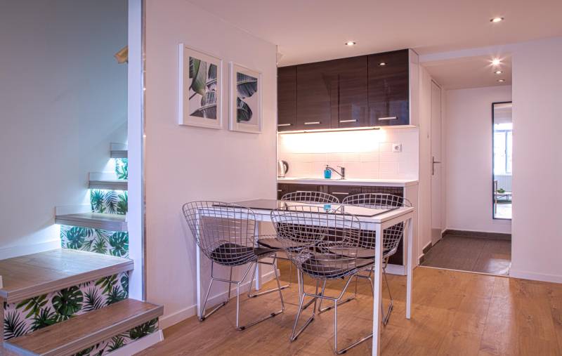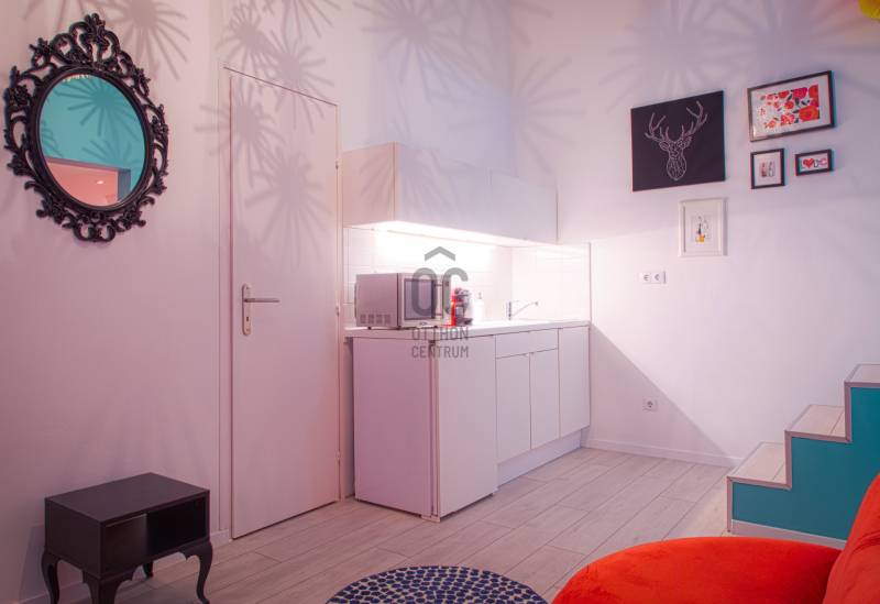 Eladó NÉGY APARTMANBÓL álló lakás a Palotanegyedben, a Mária utca és az Üllői út sarkán.Az ingatlan 125 m2-es, I. emeleti, egy századfordulós, liftes épületben található.Jelenleg rövidtávú kiadással történik a hasznosítása, az apartmanok 39 m2 + galéria, 37 m2 + galéria, 27 m2 + galéria és 16 m2 + galéria nagyságúak.Minden apartmanhoz saját fürdőszoba és konyha tartozik. Kettőnek az ablakai a Mária utcára, kettőnek pedig az udvar felé néznek.Kitűnő közlekedési adottságok, 4-6-os villamos és a kék metró megállója fél perc sétára található.Egyetemek, bevásárló központ, éttermek és kávézók a közvetlen közelben találhatók.
