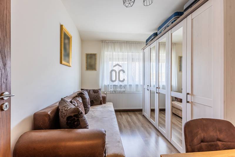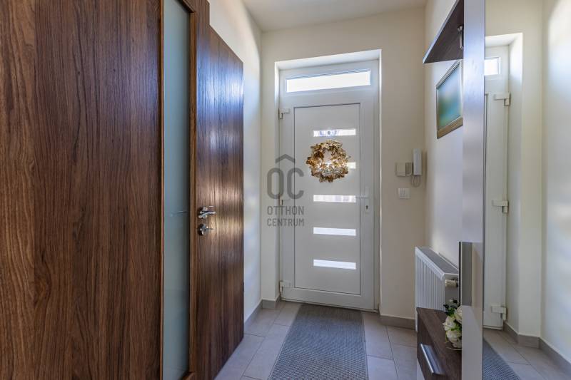 Fót egyik LEGFELKAPOTTABB részén, a KIRÁLYDOMB városrész szívében vált eladóvá ez a kiváló állapotú ház.A lokáció PRESZTÍZS értékű, kimondottan NÍVÓS és jól ellátott terület, kifejezetten jó lakóösszetétellel.Az ingatlan 2019-ben épült PRÉMIUM KIVITELEZÉSSEL és MODERN DESIGN-nal, és jelenleg is KIVÁLÓ állapotú.Ennek a csodás OTTHON-nak az egyik KÜLÖNLEGESSÉGE a BELSŐÉPÍTÉSZ által tervezett német PRÉMIUM NOBILIA KONYHA, amely még GARANCIÁLIS. Természetesen tartozékai a nívós konyhagépek, a beépített hűtő, a gránit mosogató és minőségi mosogatógép, szagelszívó.Az ingatlan másik EXTRÁJA a 12,2 nm-es PANORÁMÁS FEDETT TERASZ, ahonnan gyönyörű kilátás nyílik a környező zöldellő tájra.A nagy üvegtáblás teraszajtókon át szinte egybenyílik a nappali a terasszal.Egész nap napos, világos és nagyon jó rezgésű otthon.Amerikai konyhás nappalival, négy tágas szobával, valamint két fürdőszobával rendelkezik, így kényelmes teret biztosít minden lakója számára. A FÖLDSZINTEN IS van egy 16 nm-es tágas SZOBA, ami tökéletes dolgozószobának vagy szülőknek, nagyszülőknek.A ház fűtése GÁZCIRKÓ rendszerrel, a hűtése inverteres KLÍMÁVAL biztosított. Fenntartási költsége kifejezetten KEDVEZŐ, a TELJES REZSI télen 37 ezer, nyáron pedig MINDÖSSZE 18 ezer forint!A minőségi BEÉPÍTETT BÚTOROK és szekrények maximálisan kihasználják a rendelkezésre álló teret.Igény és megegyezés szerint akár a bútorok is megvásárolhatók.EXTRÁK:Nobilia német prémium konyhaMinőségi beépített szekrényekEnergiatakarékos LED világítás3 rétegű műanyag ablakokSzúnyoghálóRedőnyökRiasztóToshiba klímaKerti tárolóKamraMosókonyhaFedett teraszPanoráma2 autóbeálló2 fürdő, 2 illemhelyEdzett üveg zuhanykabinA környék ellátottsága kiváló, hiszen a közelben megtalálható szinte minden, ami a család kényelmét szolgálja: bank, CBA, rendelő, gyógyszertár, ovi, bölcsi, suli, Fóti-tó, futópálya, játszótér, stb. Vonat és busz 5 perc sétatávolságra van. A csendes, biztonságos környék ideális választás mindazok számára, akik a nyugalmat és a természet közelségét keresik, miközben a város előnyeit is élvezni szeretnék. Az ingatlan jó választás mind a prémium minőség, mind pedig a presztizs lokáció szempontjából.Hívjon bizalommal a hét bármely napján!