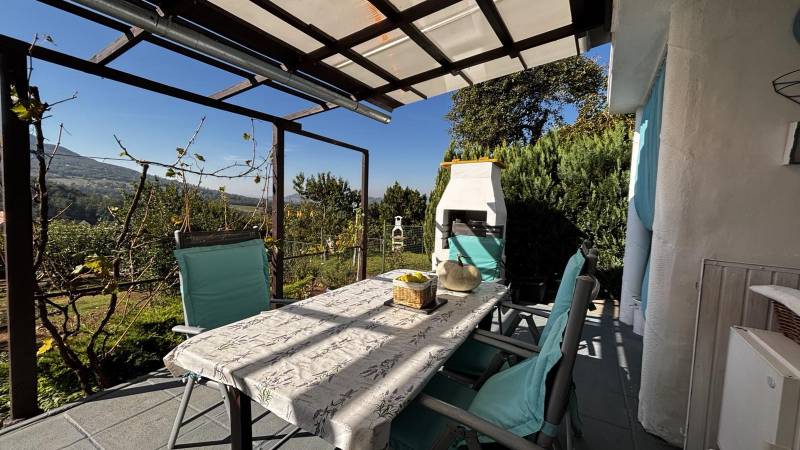 A Tapolcától és a Balatontól is 5-5 kilométerre lévő, mintegy 1000 lakosú Nemesgulács a Tapolcai-medence déli részén, a Gulács nyugati tövében fekszik. A Balaton-felvidéki Nemzeti Parkhoz tartozó tájat ez a 393 méter magas bazaltvulkáni tanúhegy uralja, melyet cukorsüvegnek is neveznek,a hegyről gyönyörű kilátás nyílik a Tapolcai-medencére a Balatonra és a Keszthelyi hegységre.Az erdő ölelésében megbúvó mesebeli házikó várja új tulajdonosát.A háromszintes épület 80 nm lakótérrel és 46 nm teraszkapcsolattal rendelkezik.Földszint :- hálószoba, konyha-étkező, fürdőszoba ,terasz, elosztással.Emelet :- hálószoba, konyha-étkező, fürdőszoba, terasz.Tetőtér:-belső lépcsős kialakítással egy légterű lakrész,gardrób,fedett terasz mesés Balatoni és tájpanorámával.A ház ,két önálló lakrészre tagolódik, külön bejárattal megközelíthető.Az otthon melegét fatüzelésű kandalló biztosítja.Villany bevezetve, a vezetékes víz bevezetése folyamatban van, jelenleg a ház vízellátása víztárolóból megoldott.Az épület folyamatosan karbantartott, kiváló állapotban kerül értékesítésre.A kertben szerszám és fatároló is található.Kültéri étkező, épített grill, nagyméretű, panoráma terasz , áll a lakók rendelkezésére.A gondozott, dísznövényekkel , termő gyümölcsfákkal betelepített kert 1541 nm területtel rendelkezik.Az épület minden szintjéről lélegzetelállító panorámát élvezhetünk.Aszfaltos úton át, minden évszakban jól megközelíthető, az autók parkolása a ház mellett megoldott.A külterületi házikó kifüggesztési eljárást nem igényel, rövid határidővel birtokba vehető.A tulajdonos, a nyaralót teljes berendezéssel együtt kívánja értékesíteni, ezt a vétel ár tartalmazza.A mesés panoráma ,a varázslatos környezet, igazi szabadság életérzést nyújt ,egyre többen emlegetik csak magyar Provence-nak a Balaton Felvidék területét.Ajánlom ezt a kisbirtokot, hétvégi házként mindazoknak, akik csendre, nyugalomra vágynak, akik a nagyváros zaját hátrahagynák hétvégente és a szabadságuk idejére a vidéki élet békéjét választva pihennének, kikapcsolódnának.Ha felkeltette az érdeklődését,hívjon bizalommal a hét bármely napján!