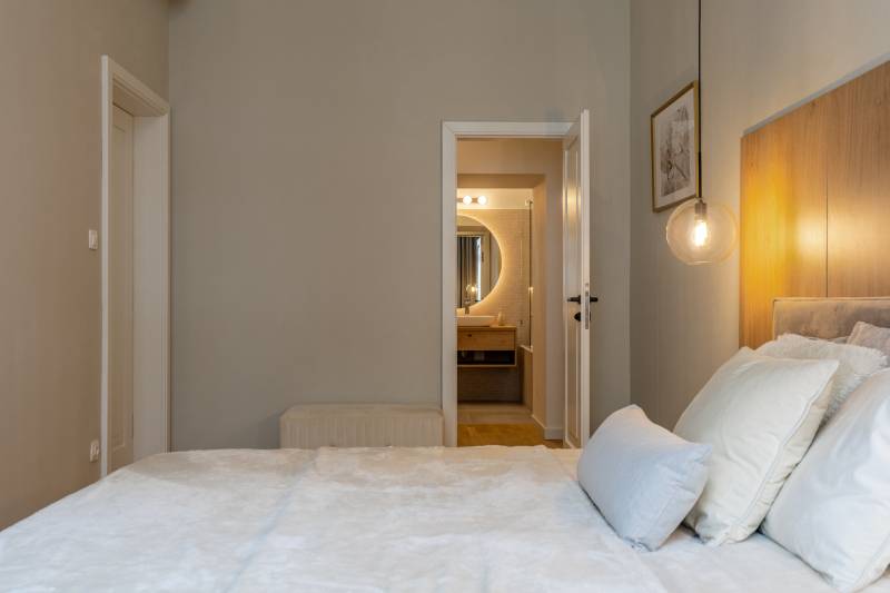 A klasszikus terek és a modern kényelem harmóniája. Üdv itthon!RÖVID ÖSSZEFOGLALÓBudapest V. kerületében, Hild tér mellett, a méltán kedvelt Október 6. utcában, 1845-ban épült, lift nélküli, kívül jó, belül átlagos, a lépcsőház pedig átlagon aluli állapotú társasház 2. emeletén, 102 m² alapterületű,utcára néző, nappali + 3 hálószobás, 2 fürdőszobás, kiváló állapotú, azonnal költözhető lakás. Ízléses, hangulatos, igazi otthon.LOKÁCIÓ – A város középpontjábanA múltat idéző, építészeti remekművek adta környezet a város lüktető szíve. Éttermek, kávézók, üzletek sokasága várja az itt élőket. Egyszerre kínál kulturális gazdagságot, kényelmet és inspiráló városi életérzést. A Duna-part, Szabadság tér, Erzsébet tér, Deák Ferenc tér, Bazilika 2 perc sétatávolságon belül.Benn vagyunk a központban mindenhez közel. Mindig tudunk magunknak izgalmas programot találni:- esti séta a Duna-parton- borbár a barátokkal- színház a kedvesünkkel- shoppingolás- kávé valamelyik helyi kávézóban- reggeli brunch az ArtizánbanA sort hosszasan lehetne folytatni.A kiváló elhelyezkedéséhez nem fér kétség, a kényelmes, biztonságos környezet garantált!AZ ÉPÜLET – Történelmi érték, rendezett miliőA XIX. század közepén épült társasház a klasszikus belvárosi polgári építészet egyik ékes példája. A homlokzat méltóságot sugároz, a tágas belső udvar hangulatos atmoszférát teremt, a lépcsőház pedig őrzi a korabeli építészeti részleteket. Bár lift nem található benne, a második emeleti elhelyezkedés könnyedén megközelíthető, ami tovább erősíti a klasszikus polgári jelleg autentikus hangulatát.Parkolni a környező utcákban (fizetős övezet) vagy bérléssel lehetséges.LAKÁS – Kortárs elegancia polgári alapokonA lakás teljes felújítása során a polgári szerkezet nagyvonalú arányait ötvözték a modern otthonok kényelmével és kifinomult esztétikájával. A nappali világos, tágas tér, amelyet a nagyméretű ablakokon át beáradó fény és a visszafogott színek harmóniája tesz különlegessé. A konyha elegáns fekete és natúr fa kombinációban készült, beépített gépekkel és rejtett világítással, amely egyszerre esztétikus és funkcionális. A három különnyíló hálószoba neutrális tónusokkal és természetes fa padlóval biztosít nyugodt, kiegyensúlyozott atmoszférát. A két fürdőszoba olasz burkolatokkal, modern szaniterekkel és LED-világítással készült – egyik káddal, másik walk-in zuhannyal, a legmagasabb komfortérzetet kínálva.MIÉRT KÜLÖNLEGES? Az utcára néző ablakokból minden nap a belváros gazdagon díszített homlokzatai tárulnak fel. Ez a látvány folyamatos párbeszédet teremt a lakás modern, letisztult belső világával: a klasszikus polgári építészet részletei és a kortárs design tiszta vonalai együttese ad különleges élményt, amely egyszerre idézi meg a múlt értékeit és a jelen kifinomultságát.MEGHÍVÓEz a 102 m²-es belvárosi lakás a klasszikus polgári hangulat és a modern elegancia tökéletes egysége. Egy olyan otthon, amely a város közepén biztosítja a kifinomult életteret, időtálló értéket képvisel és méltó választás mindazok számára, akik a belváros legjobb adottságait keresik.----------------------------------Díjmentes, bankfüggetlen hiteltanácsadással támogatjuk vevő ügyfeleinket a számukra legelőnyösebb finanszírozási döntések meghozatalában. Opcionálisan igénybe vehető kiegészítő szolgáltatásainkkal – mint ügyvédi közreműködés, energetikai tanúsítvány vagy villamos biztonsági felülvizsgálat – teljes körű szakmai támogatást nyújtunk az adásvétel folyamatának minden egyes lépésénél.A hirdetésben szereplő információk tájékoztató jellegűek. A tévedés és az árváltoztatás jogát fenntartjuk. Az esetleges elírásokért és technikai hibákért felelősséget nem vállalunk.Spacious Period Apartment in the Heart of DowntownWhere classical proportions meet modern comfort. Welcome home!SHORT OVERVIEWFor sale in Budapest’s 5th district, next to Hild Square, on the highly sought-after Október 6. Street: a 102 m² apartment located on the 2nd floor of a classic, 1845-built residential building (no elevator).The building’s exterior is in good condition, while the staircase and common areas are average to below average.The property itself is in excellent condition and ready to move into.It features a spacious living room, three separate bedrooms, two bathrooms, and street-facing windows.Elegant, warm, and truly feels like home.LOCATION – In the Heart of the CityA neighbourhood that captures the essence of historic Budapest — surrounded by architectural masterpieces, vibrant city life, and a rich cultural scene.Cafés, restaurants, and boutiques are just around the corner, offering both comfort and inspiration for urban living.The Danube River, Szabadság Square, Erzsébet Square, Deák Ferenc Square, and the Basilica are all within a 2-minute walk.Living here means being at the centre of everything — with endless possibilities just steps away:An evening stroll along the DanubeWine bar with friendsTheatre night with your loved oneA bit of shoppingCoffee at a local caféBrunch at Artizán Bakery…and the list goes on.The location speaks for itself: a safe, convenient, and elegant environment in one of the most desirable parts of the city.THE BUILDING – Historic Charm, Timeless AtmosphereBuilt in the mid-19th century, this classic townhouse is a fine example of downtown bourgeois architecture.The façade radiates dignity, the spacious inner courtyard creates a pleasant, intimate atmosphere, and the staircase retains original architectural details from the era.Although there is no lift, the second-floor location is easily accessible, preservin