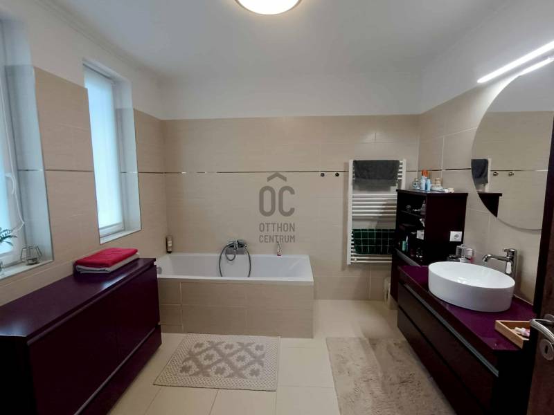 Fótliget varázslatos, zárt és igényes lakóparkjában, 550 m²-es telken található ez a 2019-ben épült, 2023-ban teljes körűen felújított, gyakorlatilag újszerű családi otthont kínálunk eladásra. A lakópark Fótliget Budapest közvetlen közelében, Fót közigazgatási területén található, 45 hektáros, zárt és őrzött lakópark. Családias, nagy telkekkel rendelkező, biztonsági szolgálattal ellátott, nyugodt kertvárosi környezet. A házak egyedi tervezésűek, modern, igényes kivitelezésekkel. Az ingatlan 2 szintes, 154 m² lakótér + garázs + fedett terasz + erkély. Lenyűgöző, magazinba illő enteriőr. Tágas, napfényes terek, praktikus alaprajz, a helyiségek kényelmes méretűek, jól bútorozhatóak. A ház minden egyes részlete a funkcionalitás és az esztétika harmonikus összhangját tükrözi. Több mint 50 m²-es, egybenyitott nappali–étkező–konyha, a tulajdonosok kényelmét biztosítja a két fürdőszoba, mosókonyha, tároló, valamint a kamra helyiség. Az emeleten találhatók a hálószobák, mind a két szinten ablakos fürdőszobával. Az alsó szinten található egy 30 m²-es terasz, ahol kora tavasztól késő őszig élvezhetjük a kertkapcsolatot. A házban belső bejárattal rendelkező garázs, valamint dupla fedett kocsibeálló található. Magas minőségű kivitelezés, rendezett, biztonságos és családias környezet.Az otthon teljes bútorzattal együtt eladó, beleértve: beépített szekrények, nagyméretű, modern kanapé, függönyök és lámpatestek, gépesített konyhabútor, Fűtést energiatakarékos kondenzációs gázkazán biztosítja padlófűtéssel és szobánként szabályozható termosztátokkal, a ház hűtése hűtő-fűtő klíma, emeleten mennyezetbe épített klímaberendezések vannak a szobákban. 3 rétegű, nyílászárók szúnyoghálóval és motoros, alumínium redőnyökkel . Zöldterületeket, játszóteret és parkot is tartalmaz. 24 órás portaszolgálattal és sorompós beléptető rendszerrel rendelkezik .Saját biztonsági szolgálat, nyugodt, különálló lakókörnyezet.További információval, megtekintéssel kapcsolatban keressen bizalommal!